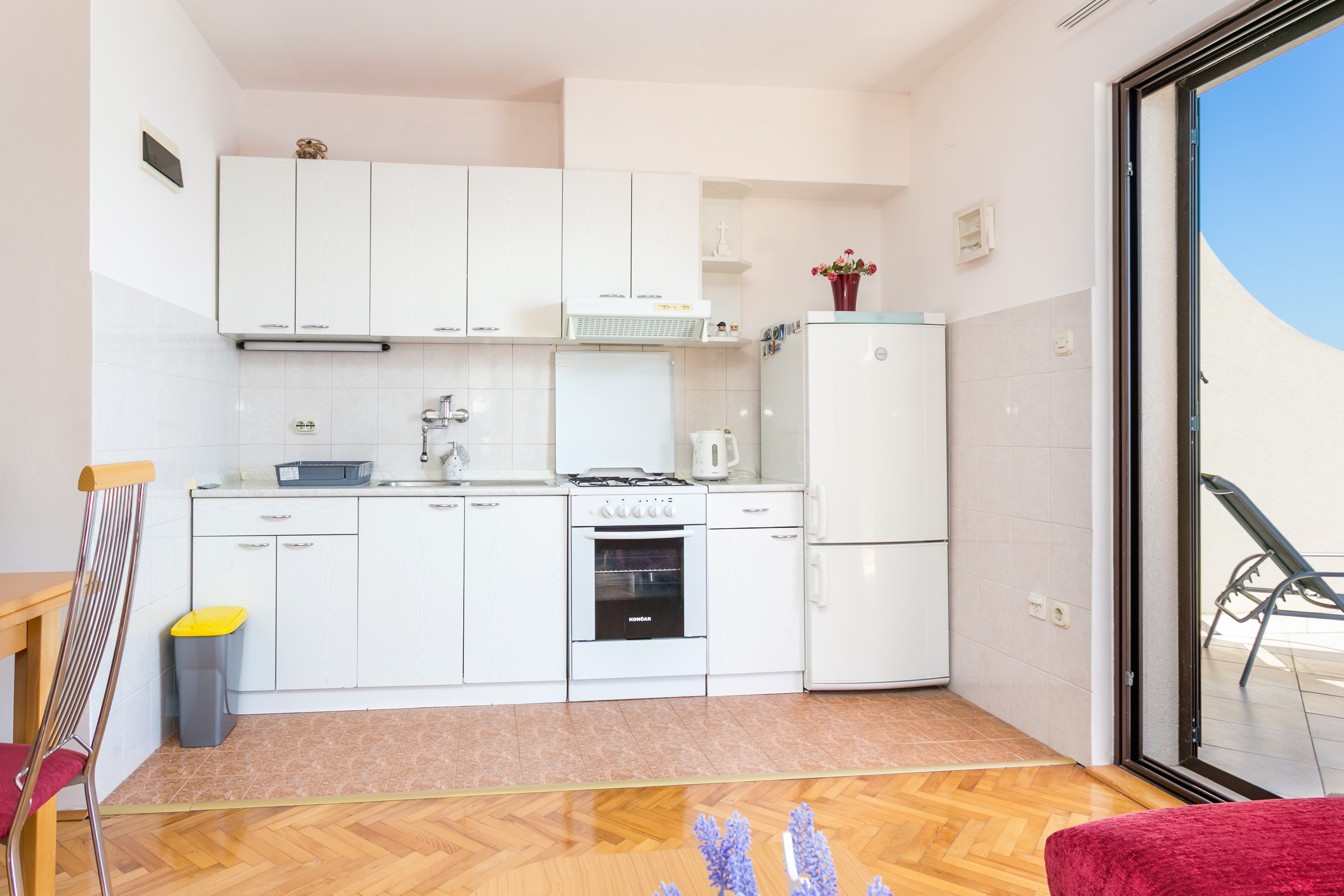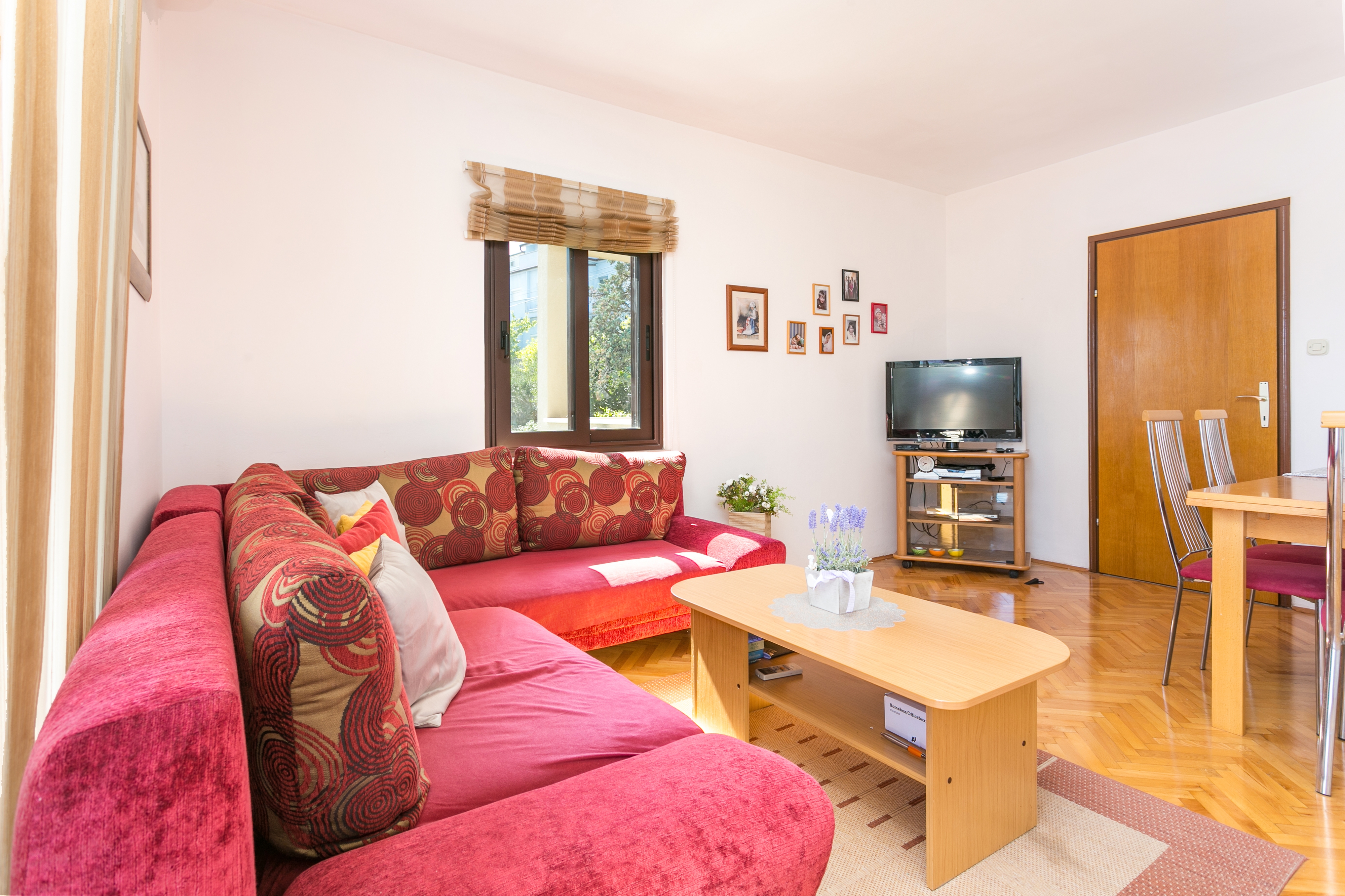 Apartament może przyjąć 6 gości. Łóżka znajdują się w sypialniach, których jest 2, oraz w pokoju dziennym, na powierzchni 57m2. Goście mają dostęp do tarasu, by korzystać z ciepłych, letnich wieczorów. Z apartamentu roztacza się widok na morze. Możliwość przygotowywania posiłków poprzez korzystanie ze wspólnego grilla. WLICZONE W CENĘ: taksa pobytowa, sprzątanie końcowe, klimatyzacja, internet, pranie bielizny, żelazko, deska do prasowania, suszarka do włosów. Dostępność dodatkowych usług w rezerwowanym terminie oraz ich cenę (jeśli nie jest podana) należy sprawdzić wcześniej. Za dodatowe usługi, które nie zostały uwzględnione w kalkulacji ceny, płaci się bezpośrednio właścicielowi obiektu, pod warunkiem śe gość korzysta z tych usług. Zniżki od ceny podstawowej: bezpłatny dzień 14=13 (przy pobycie, trwającym co najmniej 14 dni, otrzymujecie jeden bezpłatny dzień na pobyt do 31.12.2026).