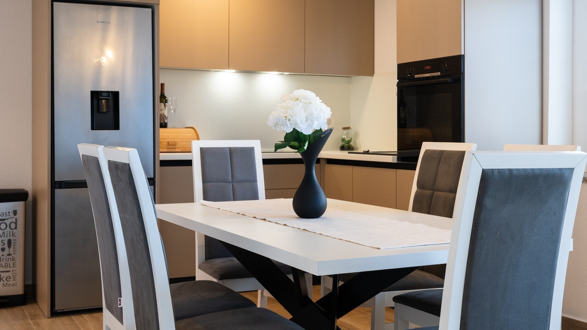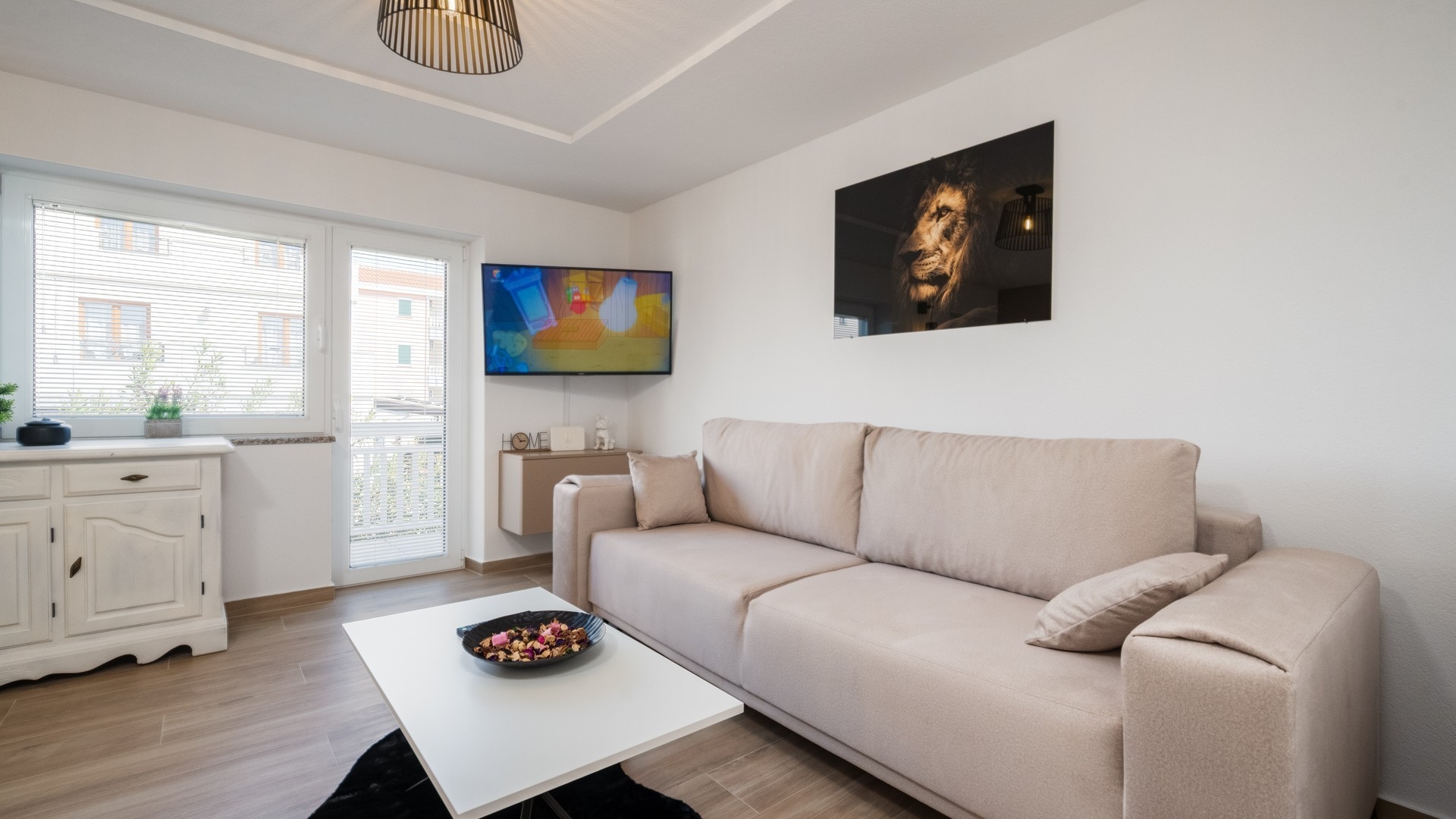 Apartament może przyjąć 5 gości. Łóżka znajdują się w sypialniach, których jest 2, oraz w pokoju dziennym, na powierzchni 55m2. Goście mają dostęp do balkonu, by korzystać z ciepłych, letnich wieczorów. Z apartamentu roztacza się widok na morze. Możliwość przygotowywania posiłków poprzez korzystanie ze wspólnego grilla. W kwaterze dozwolony jest pobyt zwierzęcia domowego, za dopłatą. WLICZONE W CENĘ: taksa pobytowa, sprzątanie końcowe, klimatyzacja, parking, internet, łóżeczko dziecięce, żelazko, deska do prasowania, suszarka do włosów, przenośny grill. NIEOBOWIĄZKOWE KOSZTY DODATKOWE: zwierzęta domowe (10,00 € za nocleg). Dostępność dodatkowych usług w rezerwowanym terminie oraz ich cenę (jeśli nie jest podana) należy sprawdzić wcześniej. Za dodatowe usługi, które nie zostały uwzględnione w kalkulacji ceny, płaci się bezpośrednio właścicielowi obiektu, pod warunkiem śe gość korzysta z tych usług.