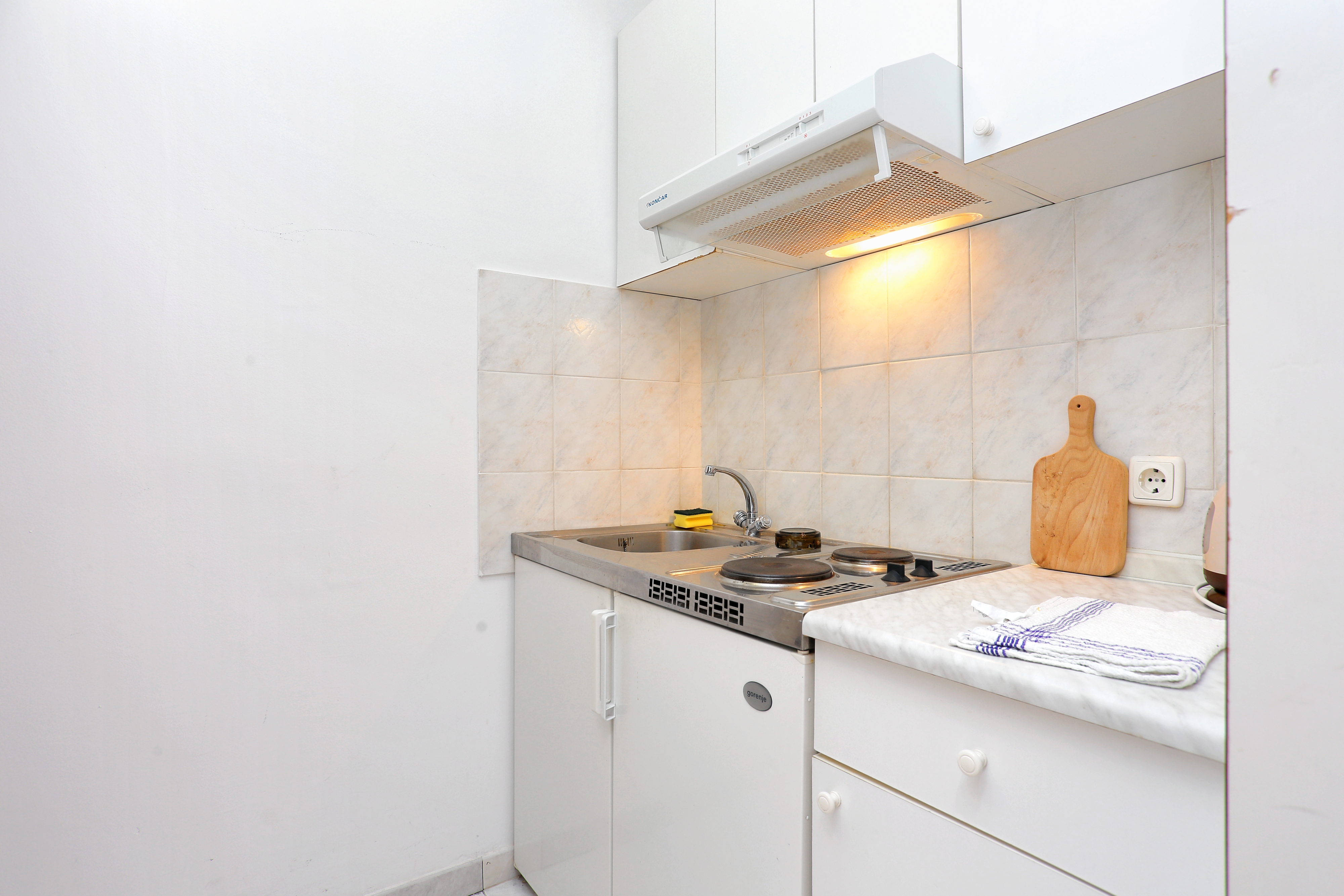 Studio może przyjąć 2 gości. Łóżka znajdują się w sypialniach, których jest 1, na powierzchni 18m2. Goście mają dostęp do balkonu, by korzystać z ciepłych, letnich wieczorów. Z apartamentu typu studio roztacza się widok na morze. Możliwość przygotowywania posiłków poprzez korzystanie ze wspólnego grilla. W kwaterze dozwolony jest pobyt zwierzęcia domowego, za dopłatą. WLICZONE W CENĘ: taksa pobytowa, sprzątanie końcowe, klimatyzacja, parking, internet, łóżeczko dziecięce, dostawka. OBOWIĄZKOWE KOSZTY DODATKOWE: dopłata za krótki termin (procent dopłaty w zalezności od liczby noclegów: 30% - 1, 20% - 2, 10% - 3). NIEOBOWIĄZKOWE KOSZTY DODATKOWE: zwierzęta domowe (18,00 € za nocleg). Dostępność dodatkowych usług w rezerwowanym terminie oraz ich cenę (jeśli nie jest podana) należy sprawdzić wcześniej. Za dodatowe usługi, które nie zostały uwzględnione w kalkulacji ceny, płaci się bezpośrednio właścicielowi obiektu, pod warunkiem śe gość korzysta z tych usług. Zniżki od ceny podstawowej: bezpłatny dzień 14=13 (przy pobycie, trwającym co najmniej 14 dni, otrzymujecie jeden bezpłatny dzień na pobyt do 31.12.2026).