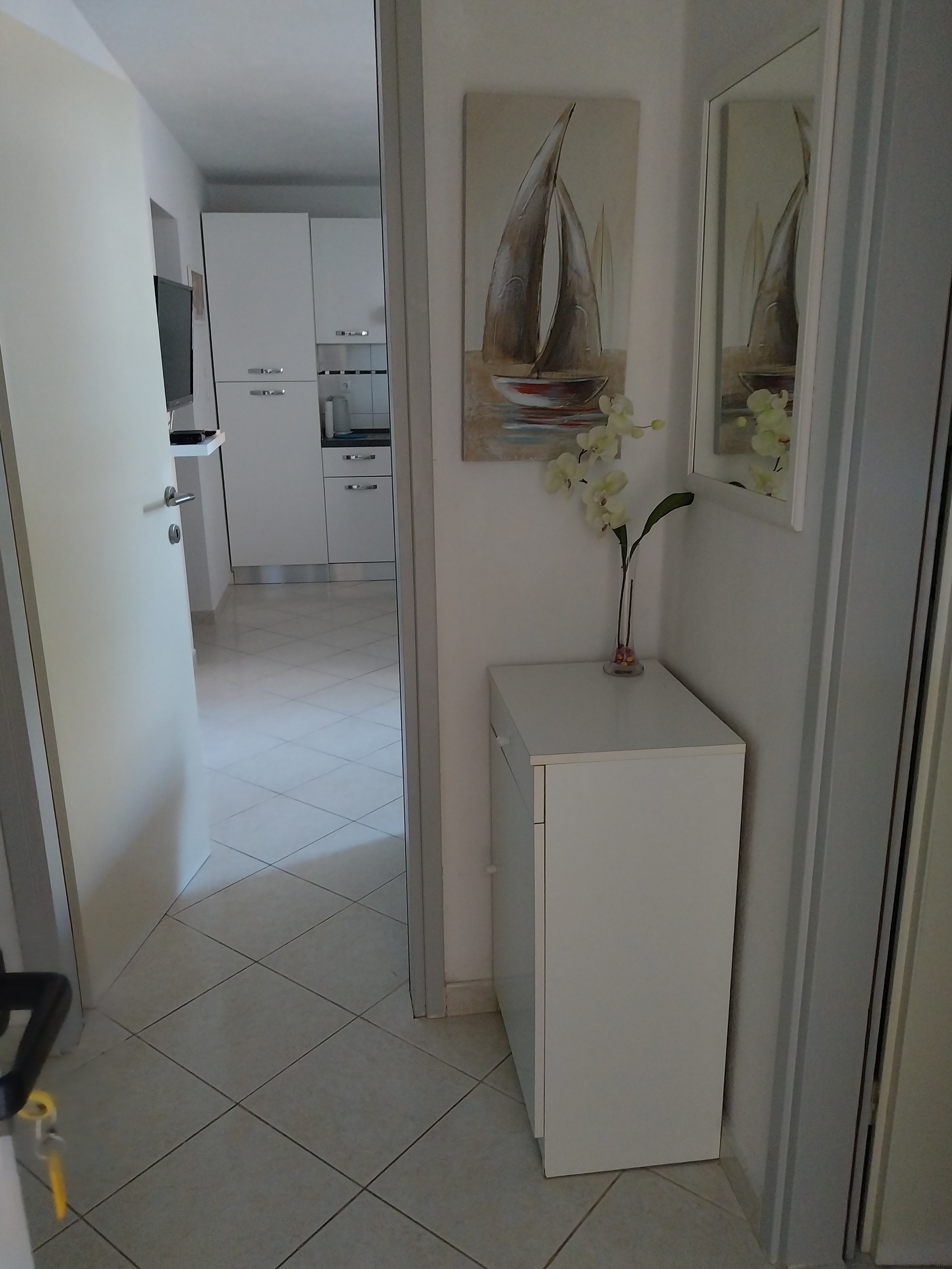 Apartament może przyjąć 4 gości. Łóżka znajdują się w sypialniach, których jest 2, na powierzchni 41m2. Goście mają dostęp do tarasu, by korzystać z ciepłych, letnich wieczorów. Z apartamentu roztacza się widok na morze. Możliwość przygotowywania posiłków poprzez korzystanie ze wspólnego grilla. WLICZONE W CENĘ: taksa pobytowa, sprzątanie końcowe, klimatyzacja, parking, internet, łóżeczko dziecięce, żelazko, deska do prasowania, suszarka do włosów, parasol. NIEOBOWIĄZKOWE KOSZTY DODATKOWE: rower (10,00 € za dzień (za sztukę)). Dostępność dodatkowych usług w rezerwowanym terminie oraz ich cenę (jeśli nie jest podana) należy sprawdzić wcześniej. Za dodatowe usługi, które nie zostały uwzględnione w kalkulacji ceny, płaci się bezpośrednio właścicielowi obiektu, pod warunkiem śe gość korzysta z tych usług.