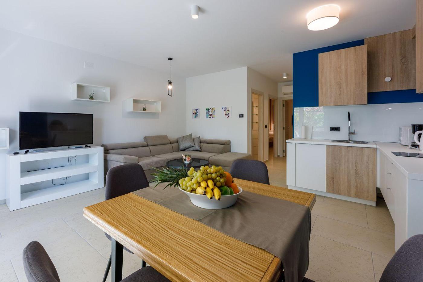 Oferta apartamentu obejmuje kilka sypialni (2), salon, aneks kuchenny z pełnym wyposażeniem, w tym lodówką i ekspresem do kawy, a także łazienkę (1) z prysznicem oraz bezpłatnym zestawem kosmetyków. W apartamencie zapewniono ręczniki i pościel.