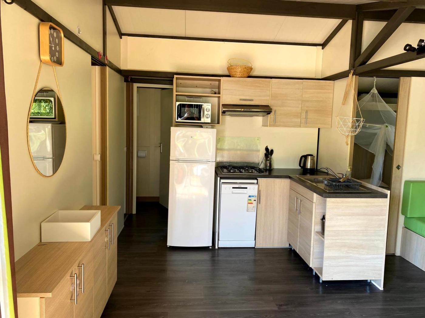 Domek holenderski. The pool with a view is the standout feature of this mobile home. Boasting a private entrance, this air-conditioned mobile home comes with 1 living room, 3 separate bedrooms and 1 bathroom with a shower and a hairdryer. Guests will find a stovetop, a refrigerator, a dishwasher and kitchenware in the fully equipped kitchen. The mobile home also includes a barbecue. Featuring a terrace with sea views, this mobile home also features a tea and coffee maker and a flat-screen TV. The unit has 5 beds. Domek holenderski - 6 osobowy. Powierzchnia pokoju ok.: 34 mkw. ;