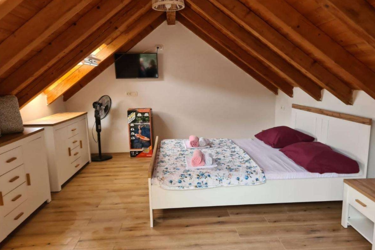 Dom może przyjąć 2 gości. Łóżka znajdują się w sypialniach, których jest 1, na powierzchni 47m2. Goście mają dostęp do tarasu, by korzystać z ciepłych, letnich wieczorów. Z domu wakacyjnego roztacza się widok na morze. Grill jest dostępny tylko do użytku gości z tej kwatery. Do kwatery można przyjechać ze zwierzęciem domowym, a usługa jest wliczona w cenę wynajęcia kwatery. WLICZONE W CENĘ: taksa pobytowa, sprzątanie końcowe, parking, internet, miejsce do cumowania łodzi, zwierzęta domowe, transport do obiektu (łodzią wynajmującego), suszarka do włosów. OBOWIĄZKOWE KOSZTY DODATKOWE: dopłata za krótki termin (procent dopłaty w zalezności od liczby noclegów: 30% - 1, 20% - 2, 10% - 3). Dostępność dodatkowych usług w rezerwowanym terminie oraz ich cenę (jeśli nie jest podana) należy sprawdzić wcześniej. Za dodatowe usługi, które nie zostały uwzględnione w kalkulacji ceny, płaci się bezpośrednio właścicielowi obiektu, pod warunkiem śe gość korzysta z tych usług. Zniżki od ceny podstawowej: bezpłatny dzień 14=13 (przy pobycie, trwającym co najmniej 14 dni, otrzymujecie jeden bezpłatny dzień na pobyt do 31.12.2026).