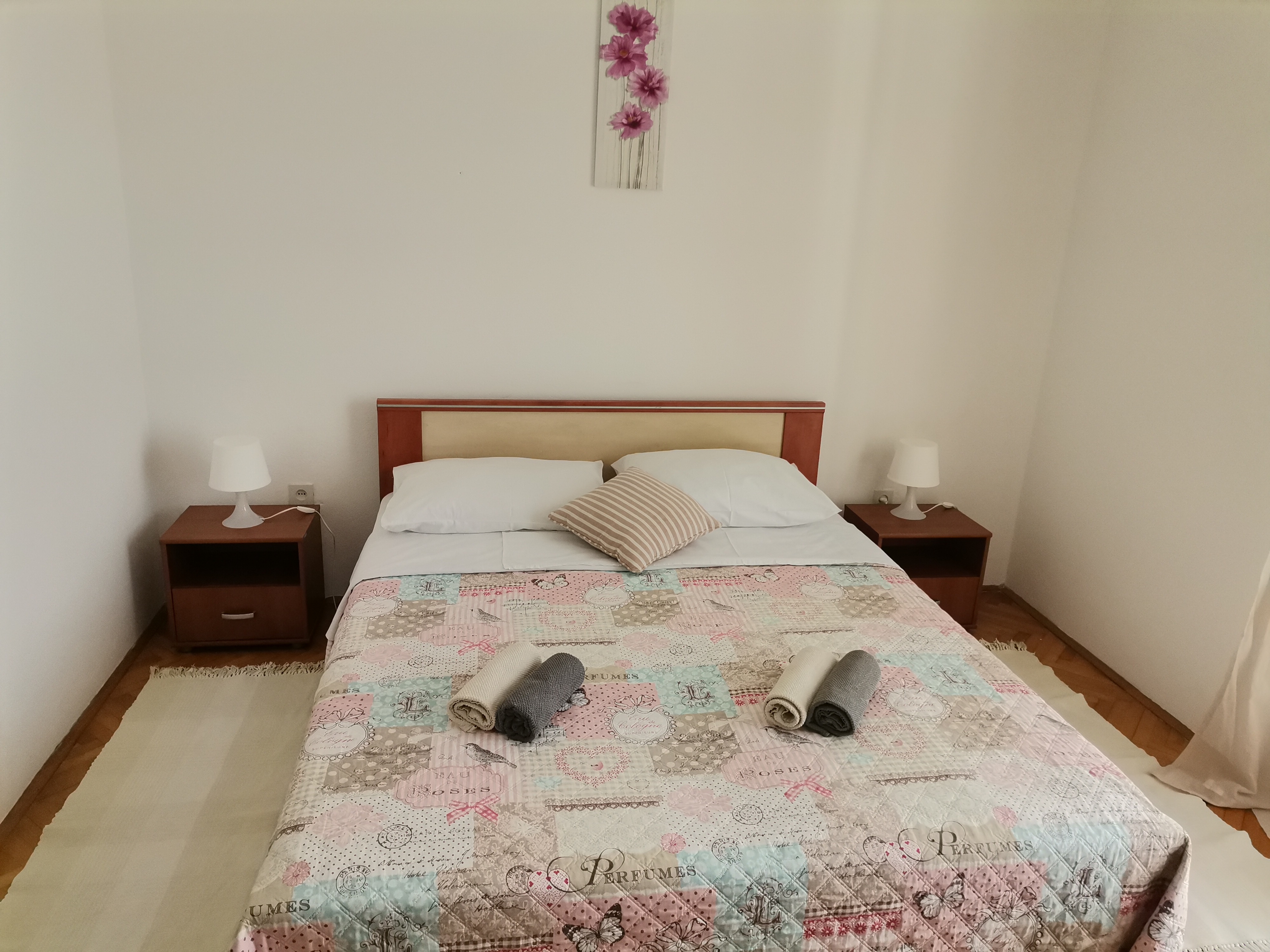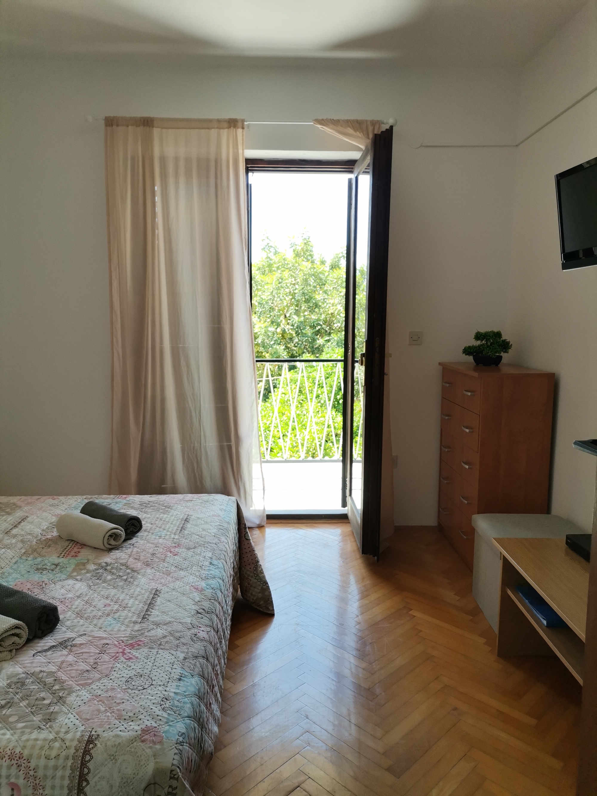 Apartament może przyjąć 2 gości. Łóżka znajdują się w sypialniach, których jest 1, na powierzchni 26m2. Goście mają dostęp do tarasu, by korzystać z ciepłych, letnich wieczorów. Z apartamentu roztacza się widok na morze. W kwaterze dozwolony jest pobyt zwierzęcia domowego, za dopłatą. WLICZONE W CENĘ: taksa pobytowa, sprzątanie końcowe, klimatyzacja, parking, internet, suszarka do włosów. OBOWIĄZKOWE KOSZTY DODATKOWE: dopłata za krótki termin (procent dopłaty w zalezności od liczby noclegów: 30% - 1, 20% - 2, 10% - 3). NIEOBOWIĄZKOWE KOSZTY DODATKOWE: pranie bielizny (5,00 € pranie), zwierzęta domowe (10,00 € za nocleg). Dostępność dodatkowych usług w rezerwowanym terminie oraz ich cenę (jeśli nie jest podana) należy sprawdzić wcześniej. Za dodatowe usługi, które nie zostały uwzględnione w kalkulacji ceny, płaci się bezpośrednio właścicielowi obiektu, pod warunkiem śe gość korzysta z tych usług. Zniżki od ceny podstawowej: bezpłatny dzień 14=13 (przy pobycie, trwającym co najmniej 14 dni, otrzymujecie jeden bezpłatny dzień na pobyt do 31.12.2026).