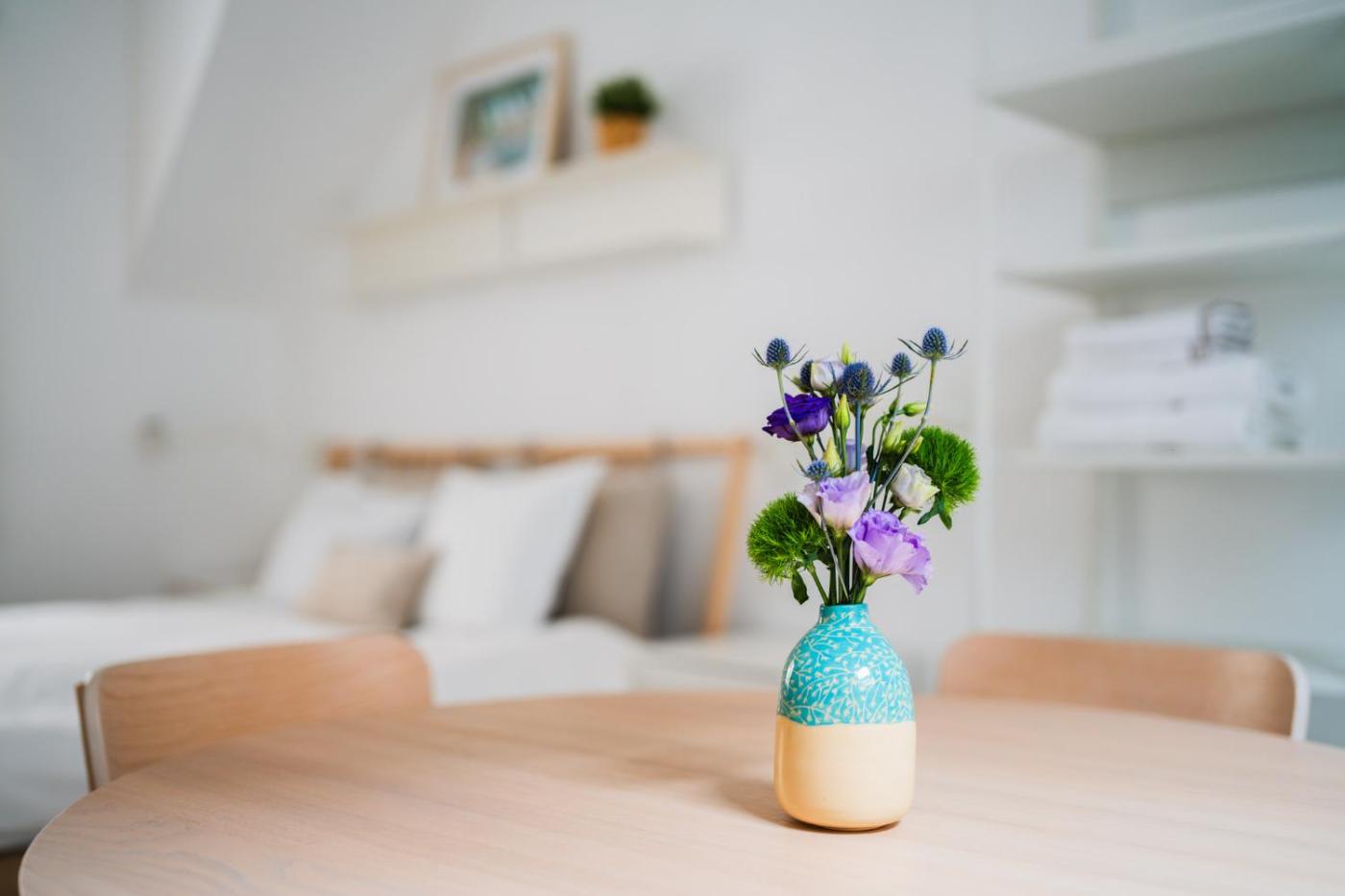 Apartament typu studio. The air-conditioned apartment features 1 bedroom and 1 bathroom with a walk-in shower and a hairdryer. The fully equipped kitchen has a stovetop, a refrigerator, kitchenware and a toaster. The apartment offers a washing machine, a coffee machine, a seating area, a flat-screen TV with streaming services, as well as a quiet street view. The unit offers 1 bed. Apartament - 2 osobowy. Powierzchnia pokoju ok.: 23 mkw. ;