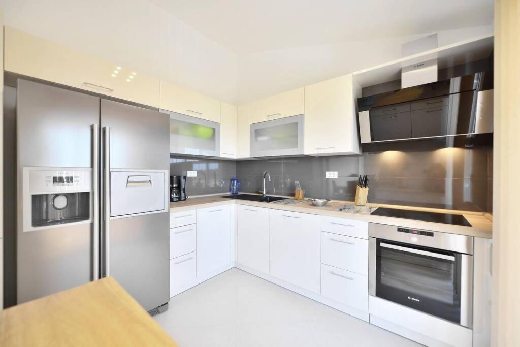 Apartament z 3 sypialniami. This apartments special feature is the pool with a view. This spacious apartment includes 3 bedrooms, a kitchen and 2 bathrooms with a walk-in shower and a hairdryer. Guests can make meals in the kitchen that has a refrigerator, a dishwasher, an oven and a microwave. The air-conditioned apartment offers a flat-screen TV with cable channels, a washing machine, a tea and coffee maker, a barbecue as well as sea views. The unit has 4 beds. Apartament - 6 osobowy. Powierzchnia pokoju ok.: 100 mkw.