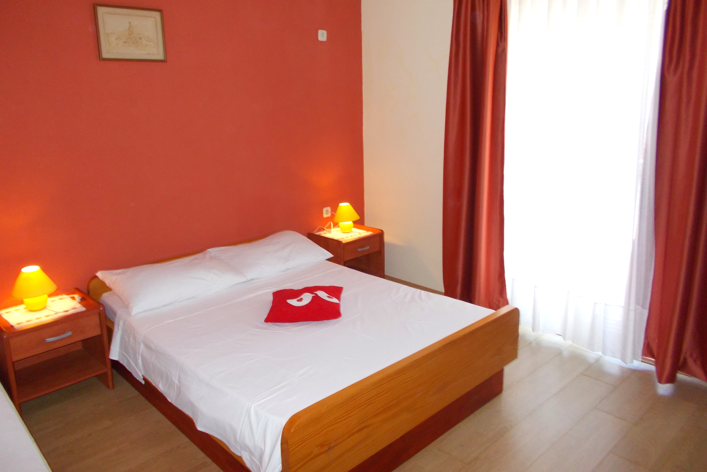 Apartament może przyjąć 4 gości. Łóżka znajdują się w sypialniach, których jest 2, na powierzchni 41m2. Goście mają dostęp do tarasu, by korzystać z ciepłych, letnich wieczorów. Z apartamentu roztacza się widok na morze. Możliwość przygotowywania posiłków poprzez korzystanie ze wspólnego grilla. WLICZONE W CENĘ: taksa pobytowa, sprzątanie końcowe, klimatyzacja, parking, internet, żelazko, deska do prasowania, suszarka do włosów, leżaki. OBOWIĄZKOWE KOSZTY DODATKOWE: dopłata za krótki termin (procent dopłaty w zalezności od liczby noclegów: 30% - 1, 20% - 2, 10% - 3). NIEOBOWIĄZKOWE KOSZTY DODATKOWE: łódź (50,00 € za nocleg). Dostępność dodatkowych usług w rezerwowanym terminie oraz ich cenę (jeśli nie jest podana) należy sprawdzić wcześniej. Za dodatowe usługi, które nie zostały uwzględnione w kalkulacji ceny, płaci się bezpośrednio właścicielowi obiektu, pod warunkiem śe gość korzysta z tych usług.