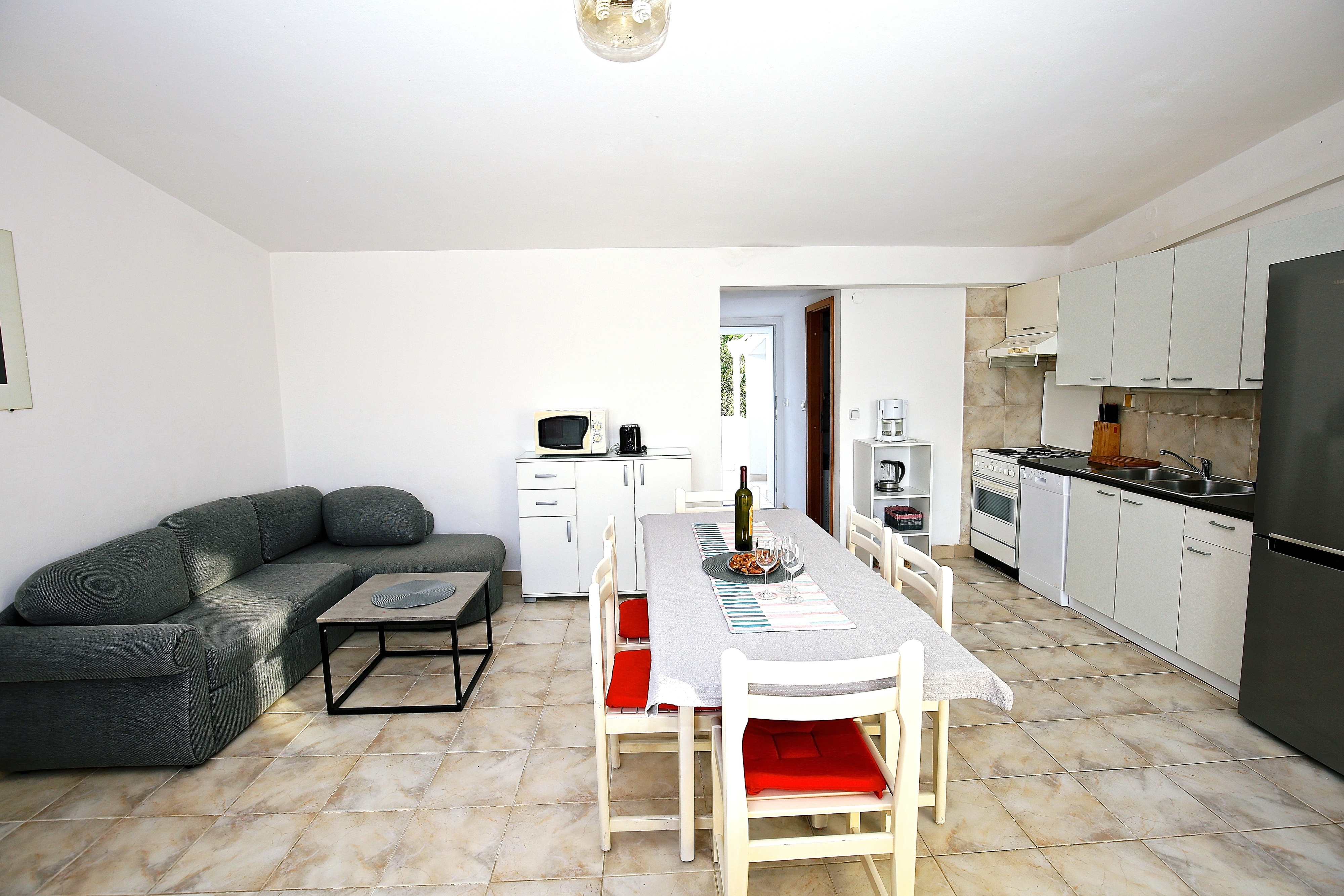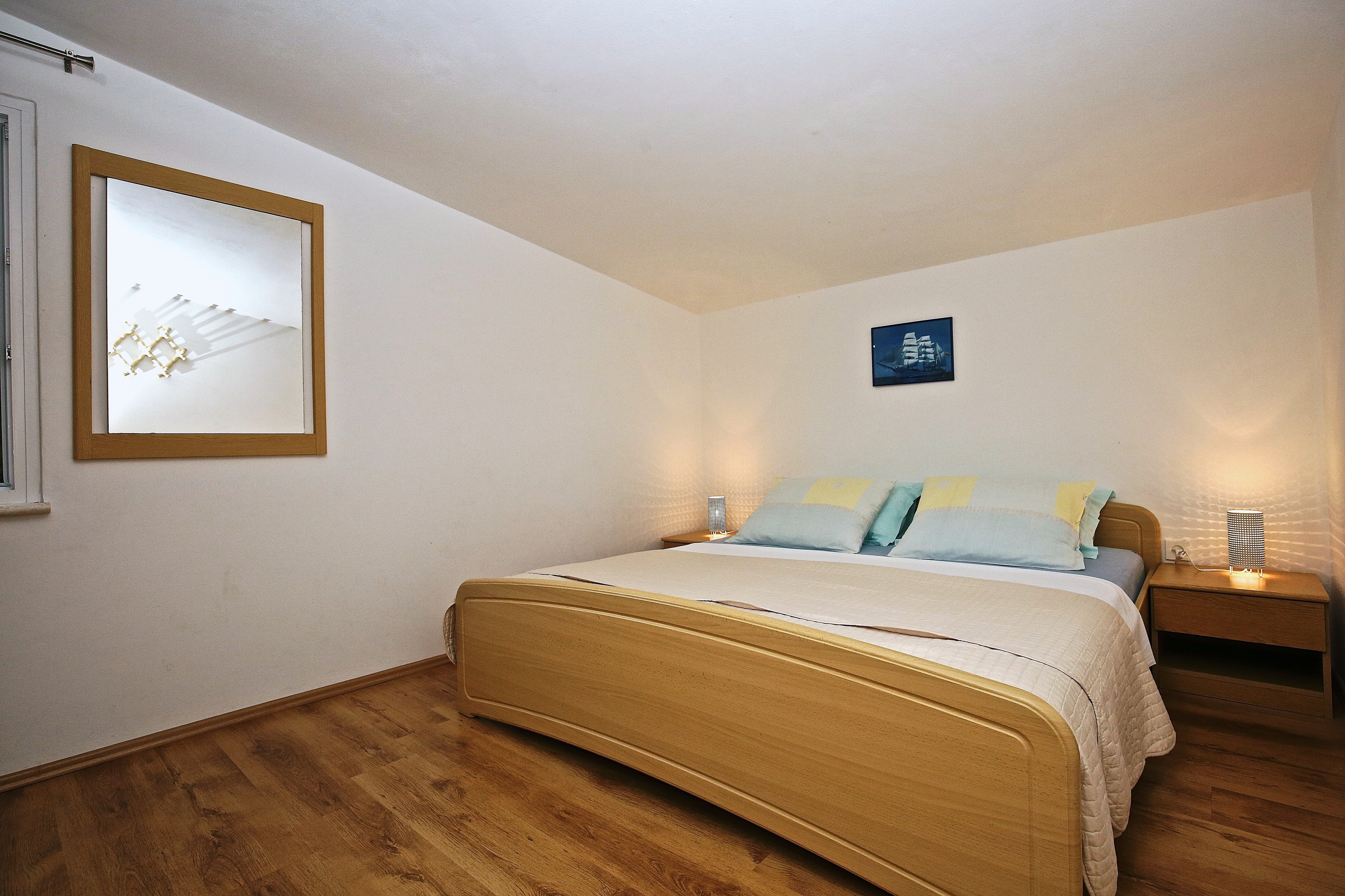 Apartament może przyjąć 8 gości. Łóżka znajdują się w sypialniach, których jest 4, na powierzchni 74m2. Goście mają dostęp do tarasu, by korzystać z ciepłych, letnich wieczorów. Z apartamentu roztacza się widok na morze. Możliwość przygotowywania posiłków poprzez korzystanie ze wspólnego grilla. W kwaterze dozwolony jest pobyt zwierzęcia domowego, za dopłatą. W rezerwowanej kwaterze na miejscu jest pobierana kaucja (jej wysokość jest podana na stronie). WLICZONE W CENĘ: taksa pobytowa, sprzątanie końcowe, klimatyzacja, parking, internet, pranie bielizny, miejsce do cumowania łodzi, łóżeczko dziecięce, żelazko, deska do prasowania. OBOWIĄZKOWE KOSZTY DODATKOWE: depozyt (100,00 € jednorazowo), dopłata za krótki termin (procent dopłaty w zalezności od liczby noclegów: 30% - 1, 20% - 2, 10% - 3). NIEOBOWIĄZKOWE KOSZTY DODATKOWE: zwierzęta domowe (7,00 € za nocleg). Dostępność dodatkowych usług w rezerwowanym terminie oraz ich cenę (jeśli nie jest podana) należy sprawdzić wcześniej. Za dodatowe usługi, które nie zostały uwzględnione w kalkulacji ceny, płaci się bezpośrednio właścicielowi obiektu, pod warunkiem śe gość korzysta z tych usług. Zniżki od ceny podstawowej: bezpłatny dzień 14=13 (przy pobycie, trwającym co najmniej 14 dni, otrzymujecie jeden bezpłatny dzień na pobyt do 31.12.2026).