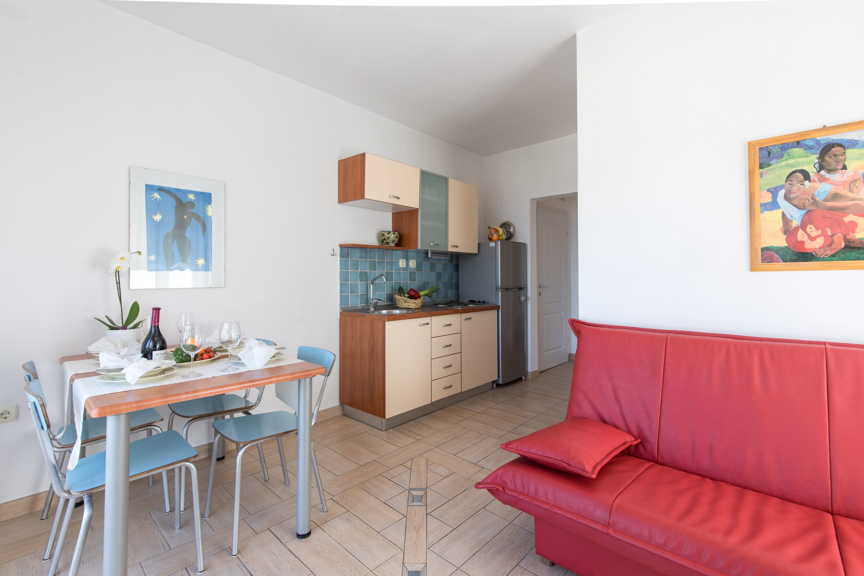 Apartament może przyjąć 4 gości. Łóżka znajdują się w sypialniach, których jest 2, na powierzchni 55m2. Goście mają dostęp do balkonu, by korzystać z ciepłych, letnich wieczorów. Z apartamentu roztacza się widok na morze. W kwaterze dozwolony jest pobyt zwierzęcia domowego, za dopłatą. WLICZONE W CENĘ: taksa pobytowa, sprzątanie końcowe, klimatyzacja, parking, internet. OBOWIĄZKOWE KOSZTY DODATKOWE: dopłata za krótki termin (procent dopłaty w zalezności od liczby noclegów: 30% - 1, 20% - 2, 10% - 3). NIEOBOWIĄZKOWE KOSZTY DODATKOWE: zwierzęta domowe (10,00 € za nocleg). Dostępność dodatkowych usług w rezerwowanym terminie oraz ich cenę (jeśli nie jest podana) należy sprawdzić wcześniej. Za dodatowe usługi, które nie zostały uwzględnione w kalkulacji ceny, płaci się bezpośrednio właścicielowi obiektu, pod warunkiem śe gość korzysta z tych usług.