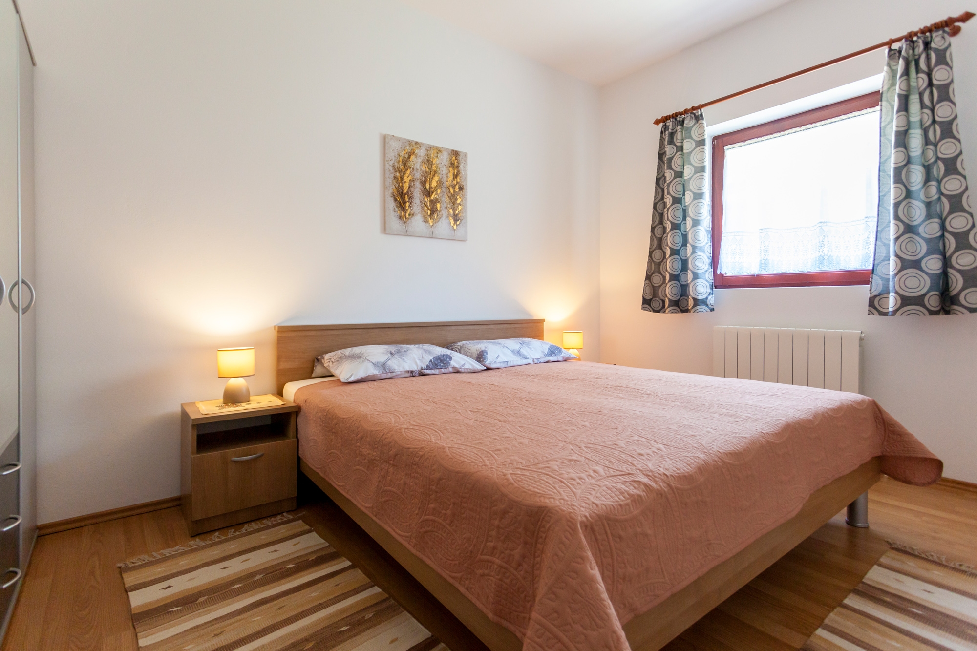 Apartament może przyjąć 4 gości. Łóżka znajdują się w sypialniach, których jest 2, na powierzchni 51m2. Goście mają dostęp do tarasu, by korzystać z ciepłych, letnich wieczorów. Możliwość przygotowywania posiłków poprzez korzystanie ze wspólnego grilla. WLICZONE W CENĘ: taksa pobytowa, sprzątanie końcowe, klimatyzacja, parking, internet. Dostępność dodatkowych usług w rezerwowanym terminie oraz ich cenę (jeśli nie jest podana) należy sprawdzić wcześniej. Za dodatowe usługi, które nie zostały uwzględnione w kalkulacji ceny, płaci się bezpośrednio właścicielowi obiektu, pod warunkiem śe gość korzysta z tych usług.