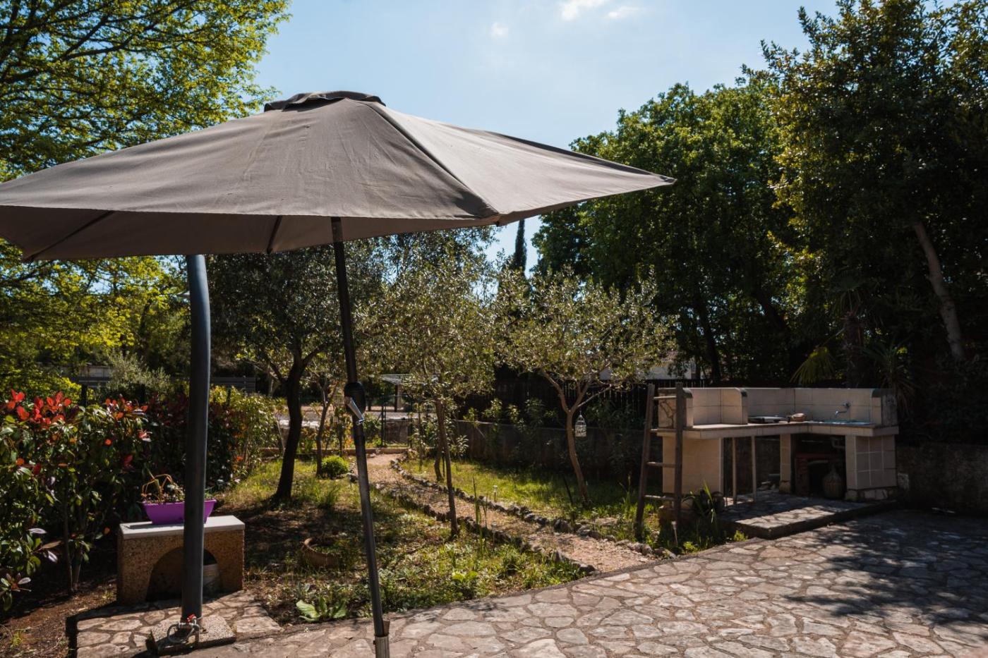 W domu wakacyjnym zapewniono taras, kilka sypialni (2), salon z telewizorem z płaskim ekranem, kuchnię ze standardowym wyposażeniem, takim jak lodówka i piekarnik, a także łazienkę (1) z bidetem. Goście mogą podziwiać widok na ogród. W domu wakacyjnym zapewniono ręczniki i pościel.