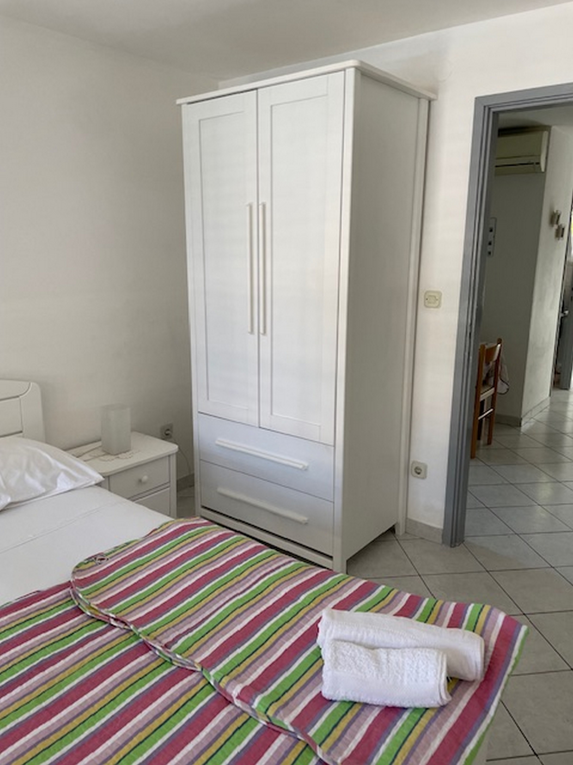 Apartament może przyjąć 2 gości. Łóżka znajdują się w sypialniach, których jest 1, na powierzchni 24m2. Goście mają dostęp do tarasu, by korzystać z ciepłych, letnich wieczorów. Z apartamentu roztacza się widok na morze. Możliwość przygotowywania posiłków poprzez korzystanie ze wspólnego grilla. WLICZONE W CENĘ: taksa pobytowa, sprzątanie końcowe, klimatyzacja, parking, internet, łóżeczko dziecięce, żelazko, deska do prasowania, suszarka do włosów. Dostępność dodatkowych usług w rezerwowanym terminie oraz ich cenę (jeśli nie jest podana) należy sprawdzić wcześniej. Za dodatowe usługi, które nie zostały uwzględnione w kalkulacji ceny, płaci się bezpośrednio właścicielowi obiektu, pod warunkiem śe gość korzysta z tych usług. Zniżki od ceny podstawowej: bezpłatny dzień 14=13 (przy pobycie, trwającym co najmniej 14 dni, otrzymujecie jeden bezpłatny dzień na pobyt do 31.12.2026).