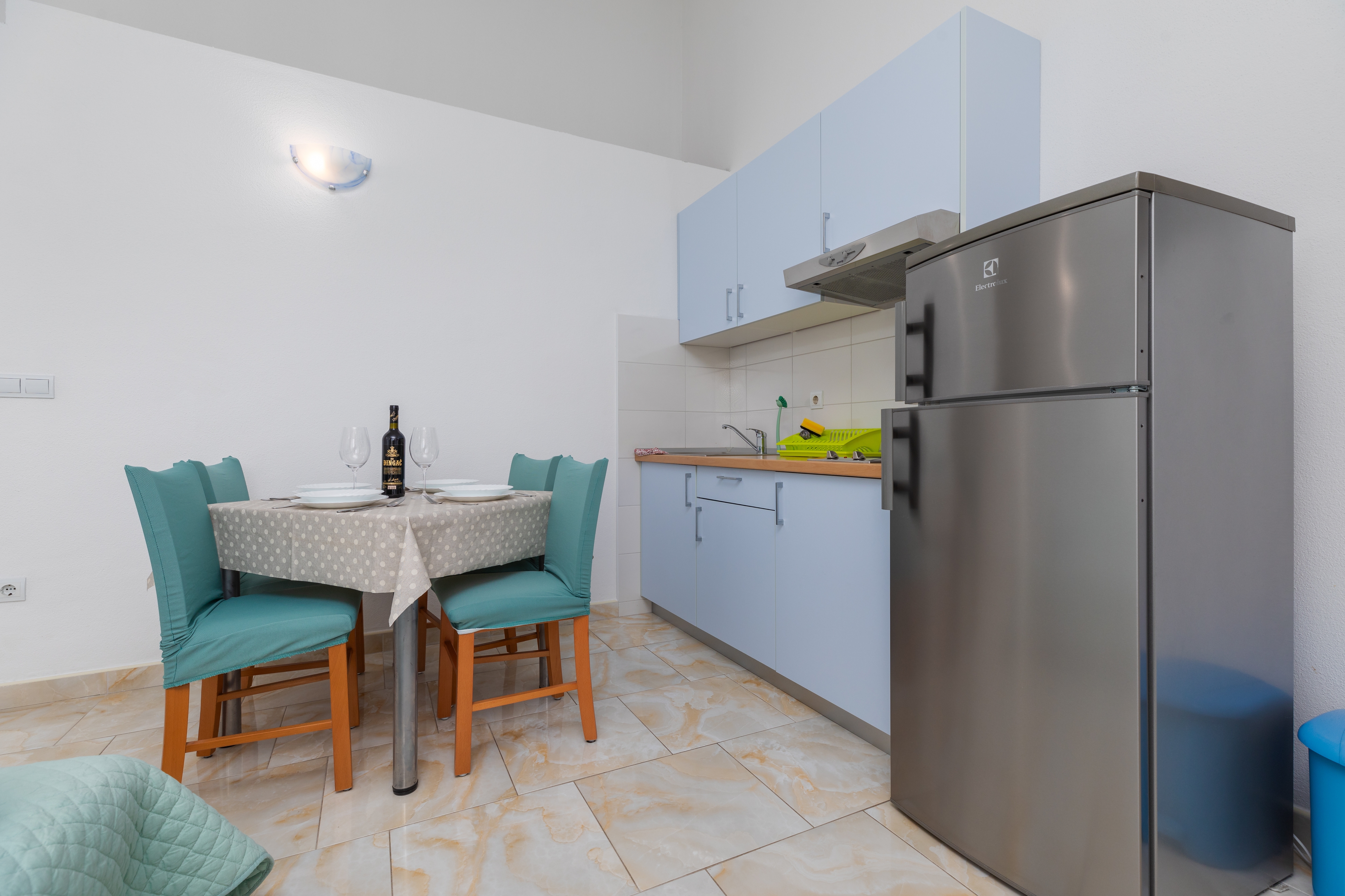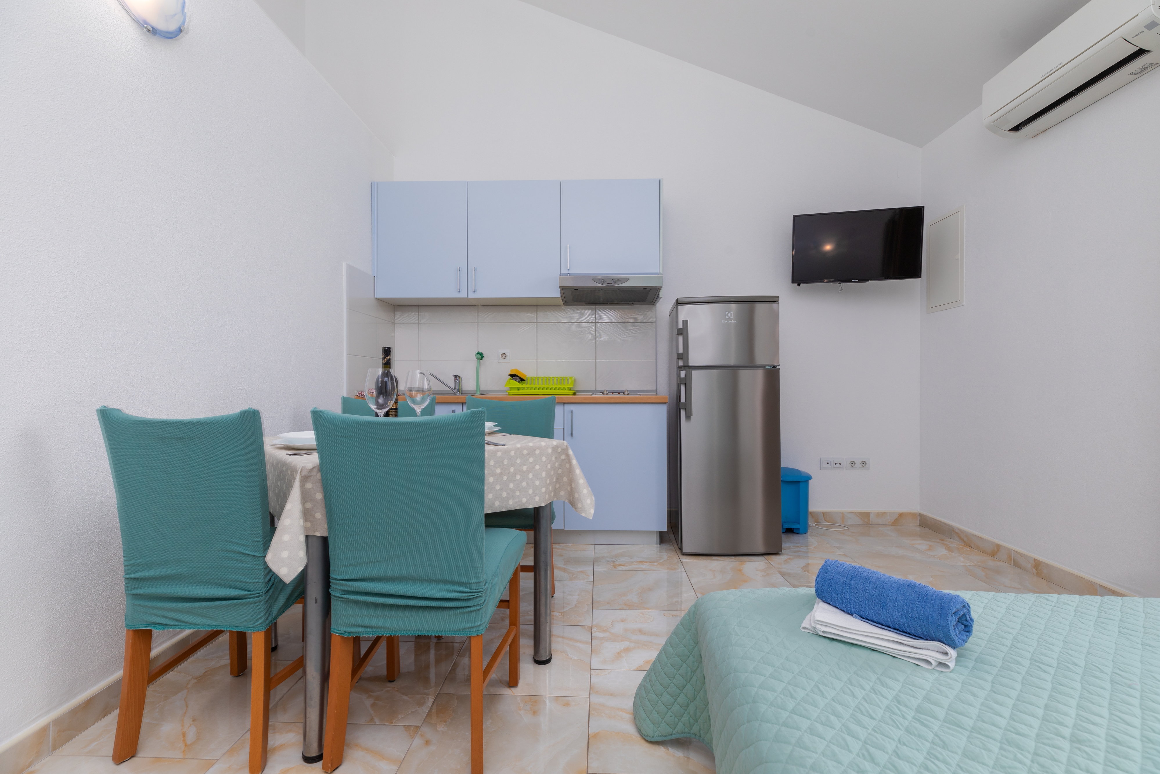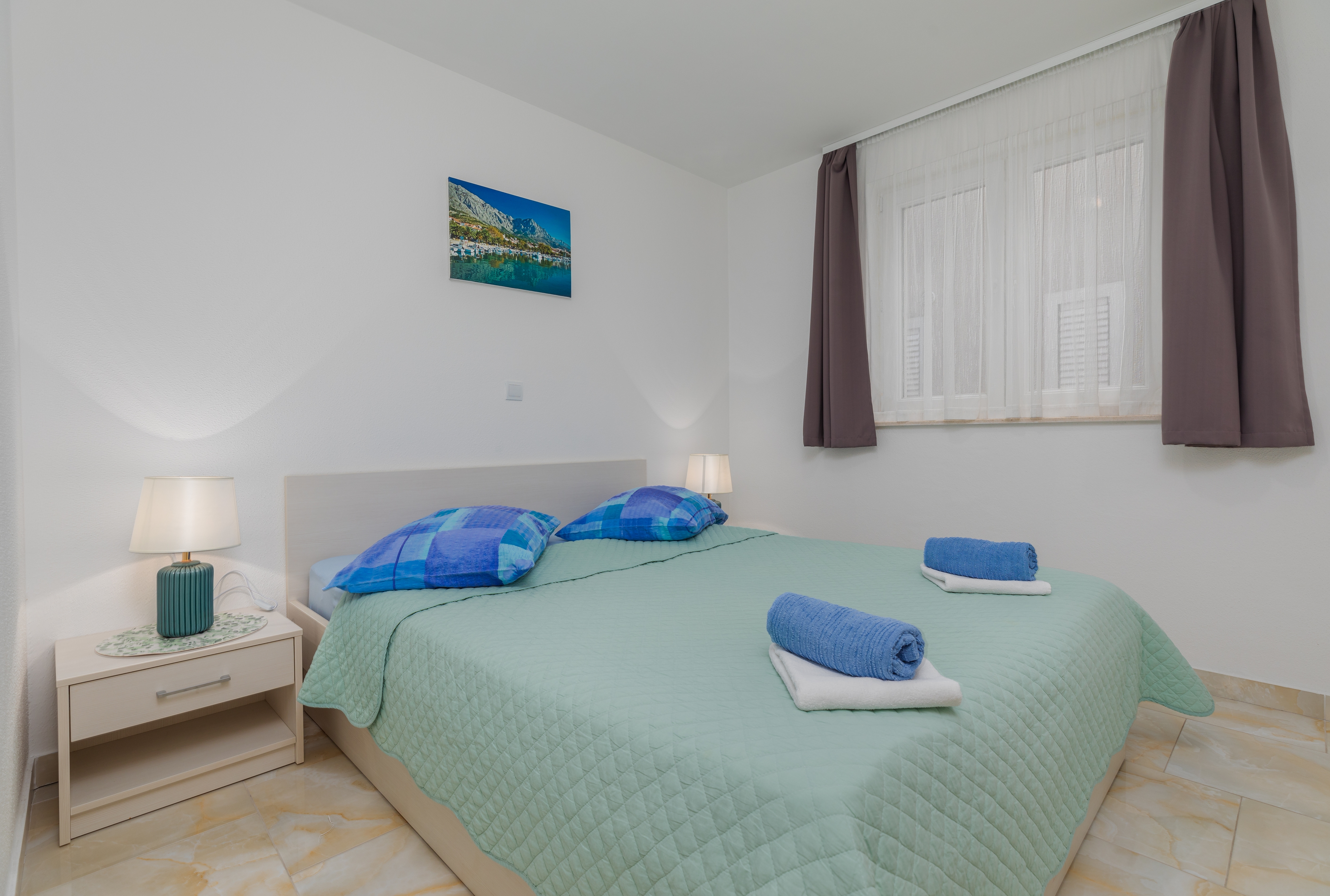 Apartament może przyjąć 4 gości. Łóżka znajdują się w sypialniach, których jest 1, oraz w pokoju dziennym, na powierzchni 34m2. Goście mają dostęp do balkonu, by korzystać z ciepłych, letnich wieczorów. Z apartamentu roztacza się widok na morze. Możliwość przygotowywania posiłków poprzez korzystanie ze wspólnego grilla. WLICZONE W CENĘ: taksa pobytowa, sprzątanie końcowe, klimatyzacja, parking, internet, żelazko, deska do prasowania, suszarka do włosów. Dostępność dodatkowych usług w rezerwowanym terminie oraz ich cenę (jeśli nie jest podana) należy sprawdzić wcześniej. Za dodatowe usługi, które nie zostały uwzględnione w kalkulacji ceny, płaci się bezpośrednio właścicielowi obiektu, pod warunkiem śe gość korzysta z tych usług.