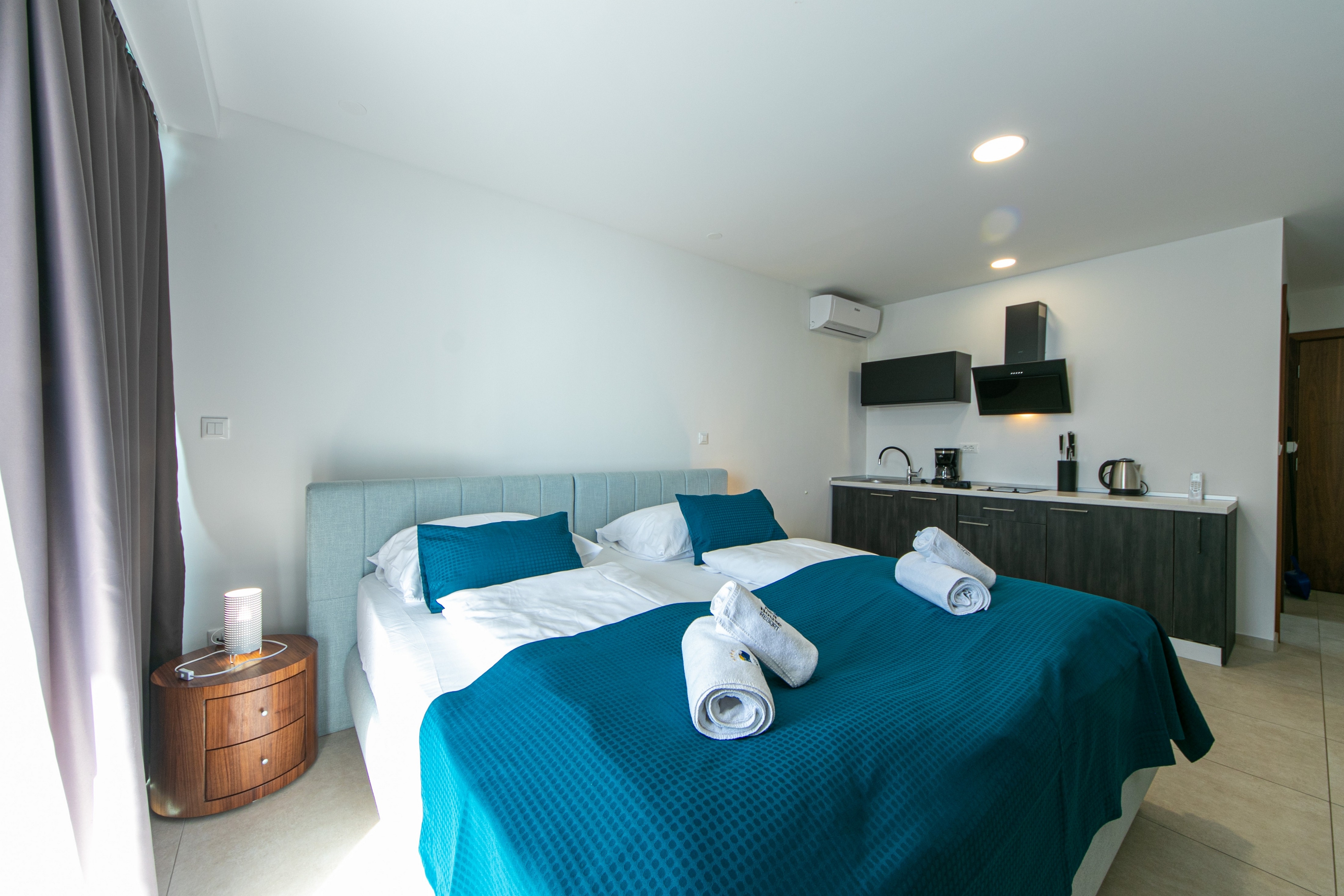 Studio może przyjąć 2 gości. Łóżka znajdują się w sypialniach, których jest 1, na powierzchni 30m2. Goście mają dostęp do tarasu, by korzystać z ciepłych, letnich wieczorów. Z apartamentu typu studio roztacza się widok na morze. W trakcie swojego pobytu goście mogą korzystać ze wspólnego basenu. WLICZONE W CENĘ: śniadanie, sprzątanie końcowe, klimatyzacja, basen, parking, internet, łóżeczko dziecięce, żelazko, deska do prasowania, suszarka do włosów. OBOWIĄZKOWE KOSZTY DODATKOWE: taksa pobytowa (dorośli 0,93 € - 2,00 € noclegosoba, zniżka dla dzieci w wieku 12 - 17 lat). NIEOBOWIĄZKOWE KOSZTY DODATKOWE: pranie bielizny (5,00 € pranie). Dostępność dodatkowych usług w rezerwowanym terminie oraz ich cenę (jeśli nie jest podana) należy sprawdzić wcześniej. Za dodatowe usługi, które nie zostały uwzględnione w kalkulacji ceny, płaci się bezpośrednio właścicielowi obiektu, pod warunkiem śe gość korzysta z tych usług.