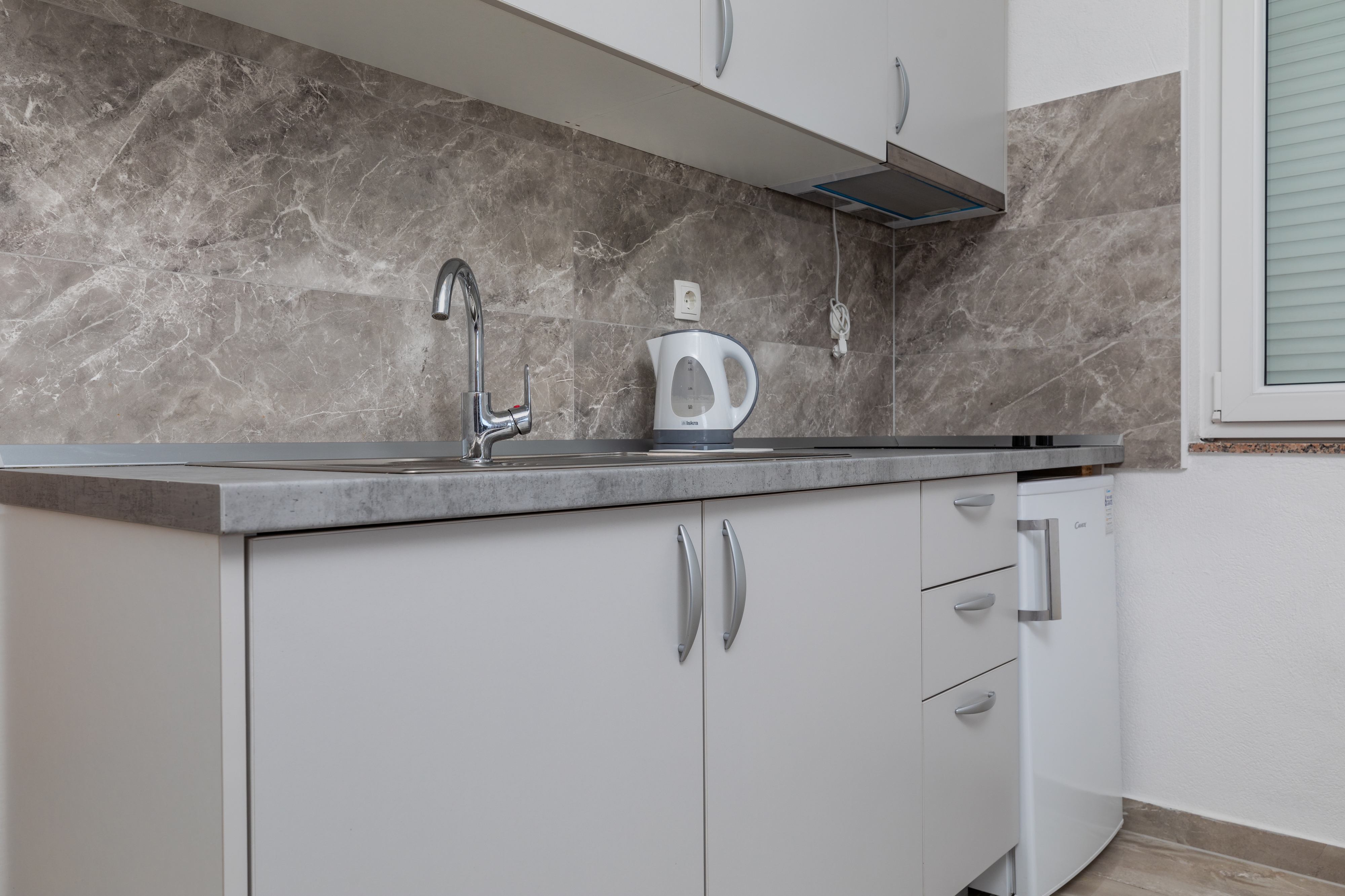 Apartament może przyjąć 4 gości. Łóżka znajdują się w sypialniach, których jest 1, oraz w jadalni, na powierzchni 37m2. Goście mają dostęp do balkonu, by korzystać z ciepłych, letnich wieczorów. Z apartamentu roztacza się widok na morze. Możliwość przygotowywania posiłków poprzez korzystanie ze wspólnego grilla. WLICZONE W CENĘ: taksa pobytowa, sprzątanie końcowe, klimatyzacja, parking, internet, łóżeczko dziecięce. OBOWIĄZKOWE KOSZTY DODATKOWE: dopłata za krótki termin (procent dopłaty w zalezności od liczby noclegów: 30% - 1, 20% - 2, 10% - 3). Dostępność dodatkowych usług w rezerwowanym terminie oraz ich cenę (jeśli nie jest podana) należy sprawdzić wcześniej. Za dodatowe usługi, które nie zostały uwzględnione w kalkulacji ceny, płaci się bezpośrednio właścicielowi obiektu, pod warunkiem śe gość korzysta z tych usług.