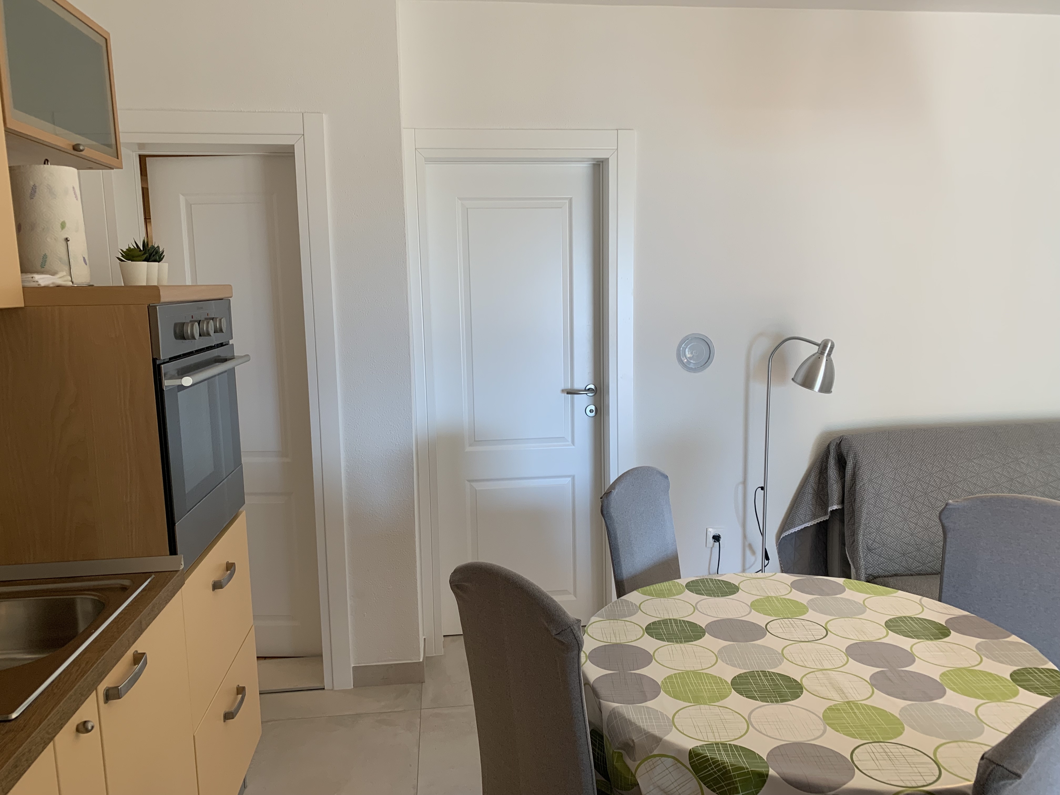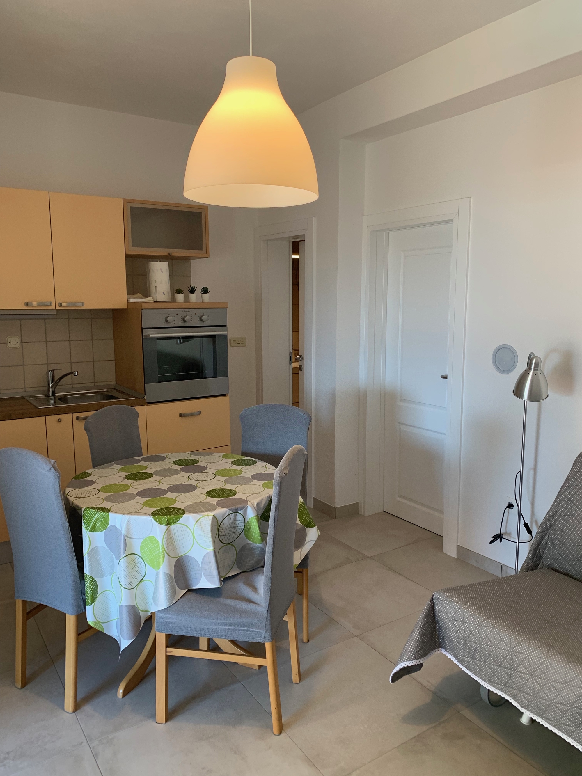 Apartament może przyjąć 4 gości. Łóżka znajdują się w sypialniach, których jest 1, oraz w jadalni, na powierzchni 33m2. Goście mają dostęp do tarasu, by korzystać z ciepłych, letnich wieczorów. Z apartamentu roztacza się widok na morze. Możliwość przygotowywania posiłków poprzez korzystanie ze wspólnego grilla. WLICZONE W CENĘ: taksa pobytowa, sprzątanie końcowe, klimatyzacja, parking, internet, pranie bielizny, łóżeczko dziecięce, żelazko, deska do prasowania, suszarka do włosów, przenośny grill, parasol, leżaki. NIEOBOWIĄZKOWE KOSZTY DODATKOWE: dostawka (10,00 € za nocleg). Dostępność dodatkowych usług w rezerwowanym terminie oraz ich cenę (jeśli nie jest podana) należy sprawdzić wcześniej. Za dodatowe usługi, które nie zostały uwzględnione w kalkulacji ceny, płaci się bezpośrednio właścicielowi obiektu, pod warunkiem śe gość korzysta z tych usług.