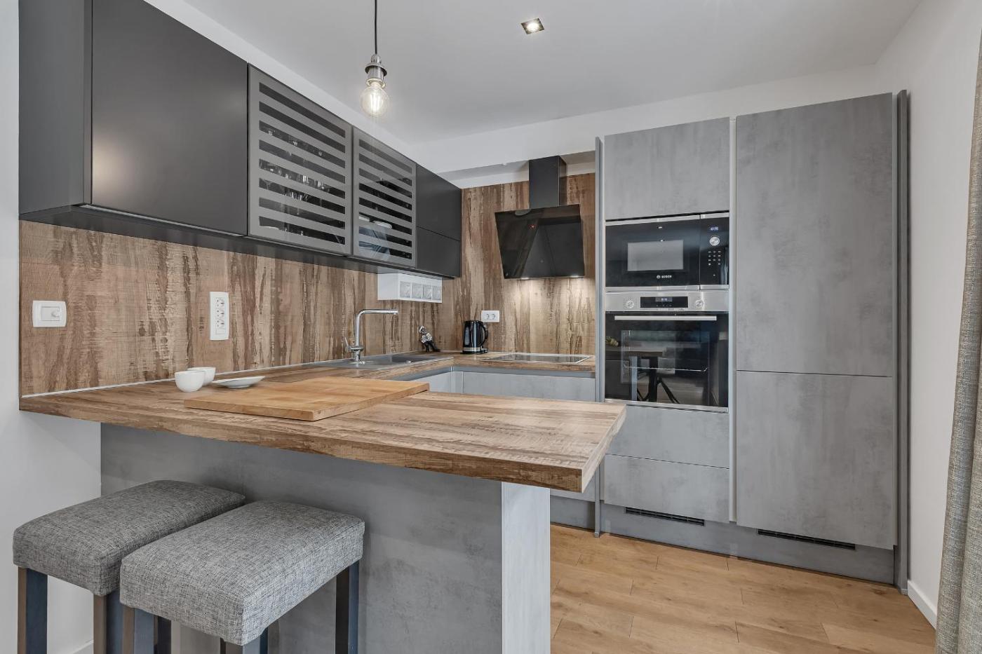 W apartamencie zapewniono kilka sypialni (2), kuchnię z lodówką i zmywarką, a także łazienkę (1) z wanną lub prysznicem, bezpłatnym zestawem kosmetyków oraz pralką. W apartamencie zapewniono ręczniki i pościel.