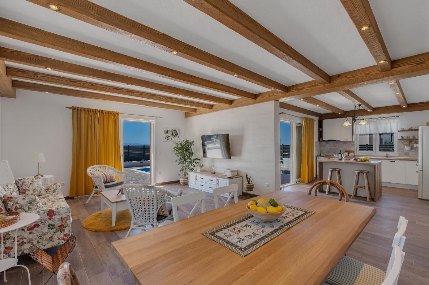 Willa z 3 sypialniami. Guests will have a special experience as this villa provides a private pool and a fireplace. Boasting a private entrance, this spacious villa also includes 3 bedrooms, a seating area and 3 bathrooms with a walk-in shower and a hairdryer. Guests will find a stovetop, a refrigerator, a dishwasher and kitchenware in the well-fitted kitchen. The villa also features a barbecue. The air-conditioned villa offers a flat-screen TV with streaming services, a washing machine, a tea and coffee maker, a dining area as well as sea views. The unit has 3 beds. Willa - 6 osobowy. Powierzchnia pokoju ok.: 200 mkw.