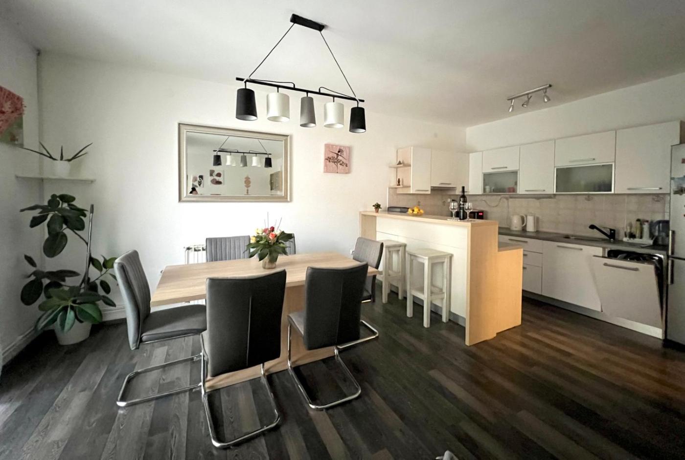 Apartament z 2 sypialniami. Guests will find a refrigerator, a dishwasher, kitchenware and an oven in the well-equipped kitchen. The apartment also provides guests with a barbecue. The spacious air-conditioned apartment provides a flat-screen TV with streaming services, a washing machine, a private entrance, a tea and coffee maker as well as garden views. The unit offers 4 beds. Apartament - 6 osobowy. Powierzchnia pokoju ok.: 90 mkw.