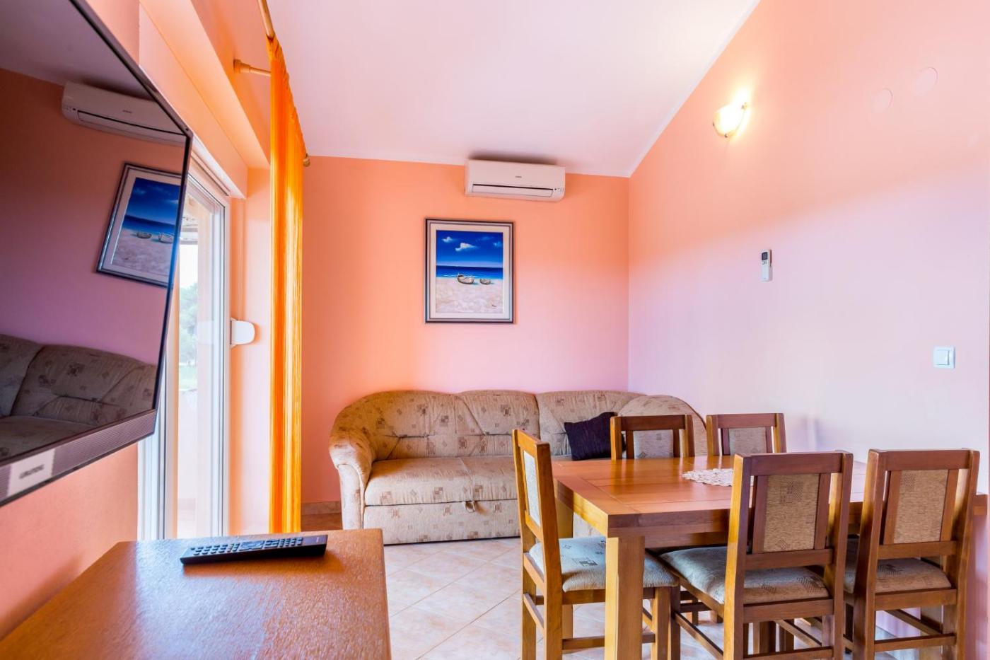 Apartament z 1 sypialnią (2 osoby dorosłe + 2 dzieci). Featuring a private entrance, this air-conditioned apartment comprises 1 living room, 1 separate bedroom and 1 bathroom with a shower. Guests will find a stovetop, a refrigerator, kitchenware and a microwave in the well-equipped kitchen. The apartment also provides guests with a barbecue. Boasting a terrace with garden views, this apartment also provides soundproof walls and a flat-screen TV with satellite channels. The unit offers 2 beds. Apartament - 4 osobowy. Powierzchnia pokoju ok.: 55 mkw. ;