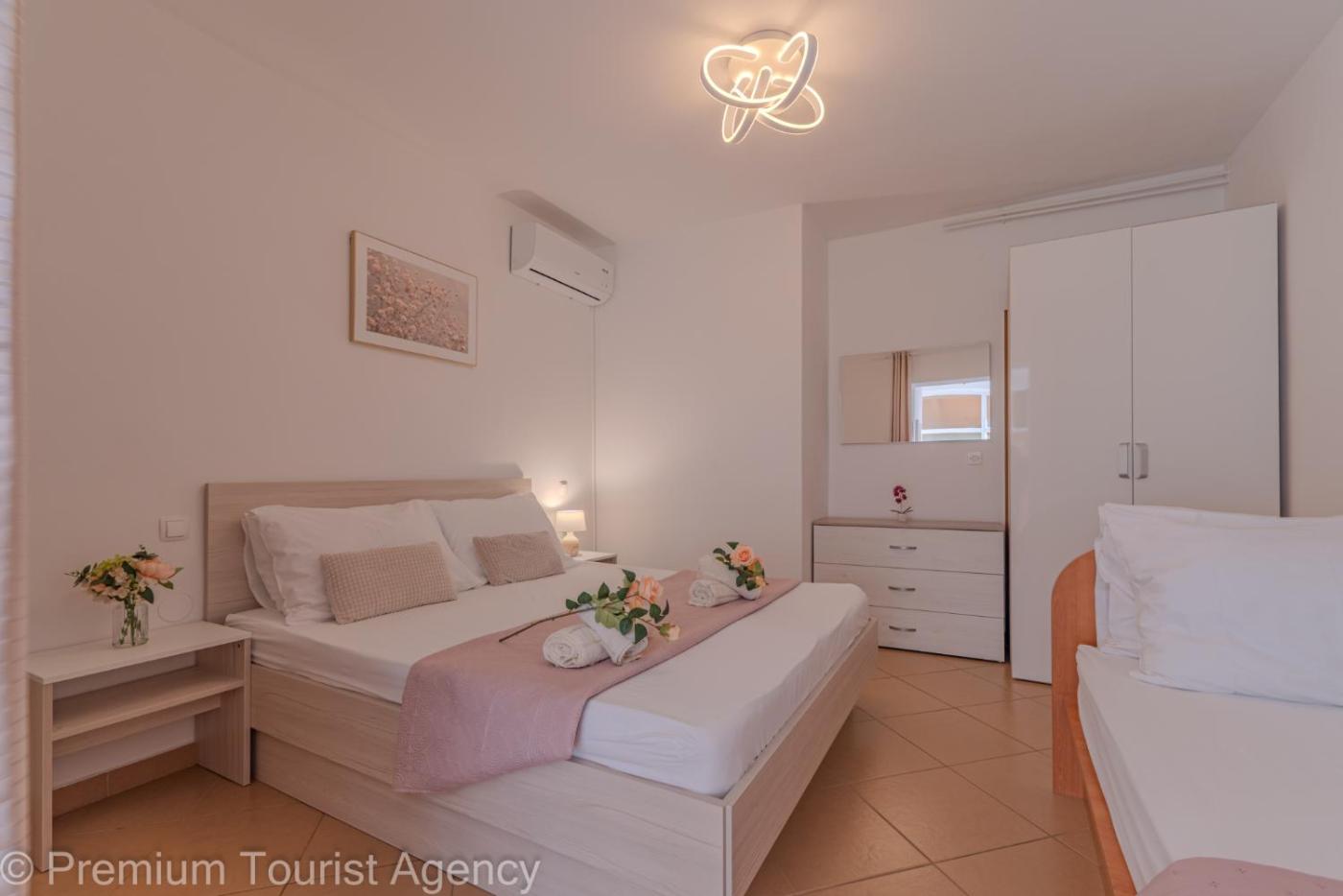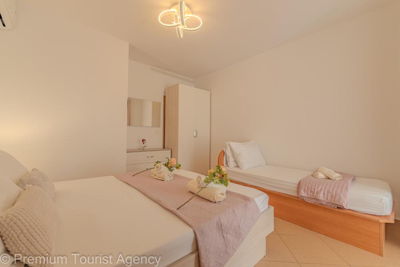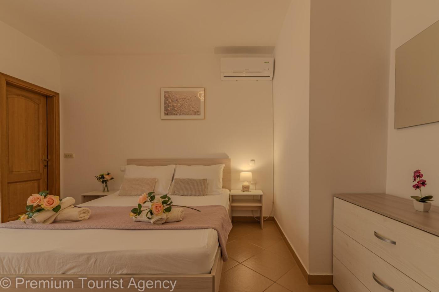 Apartament z 2 sypialniami i widokiem na morze. Boasting a private entrance, this air-conditioned apartment comes with 2 bedrooms and 1 bathroom with a shower. Guests will find a stovetop, a refrigerator, kitchenware and an oven in the fully equipped kitchen. The apartment also includes a barbecue. Featuring a terrace with sea views, this apartment also features a washing machine and a flat-screen TV. The unit has 4 beds. Apartament - 6 osobowy. Powierzchnia pokoju ok.: 60 mkw.