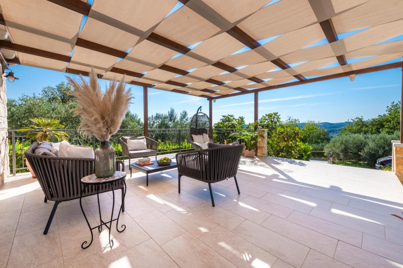 W willi zapewniono taras, kilka sypialni (4), salon z telewizorem z płaskim ekranem, kuchnię ze standardowym wyposażeniem, takim jak lodówka i zmywarka, a także kilka łazienek (4) z prysznicem. Goście mogą podziwiać widok na miasto. W willi zapewniono ręczniki i pościel.