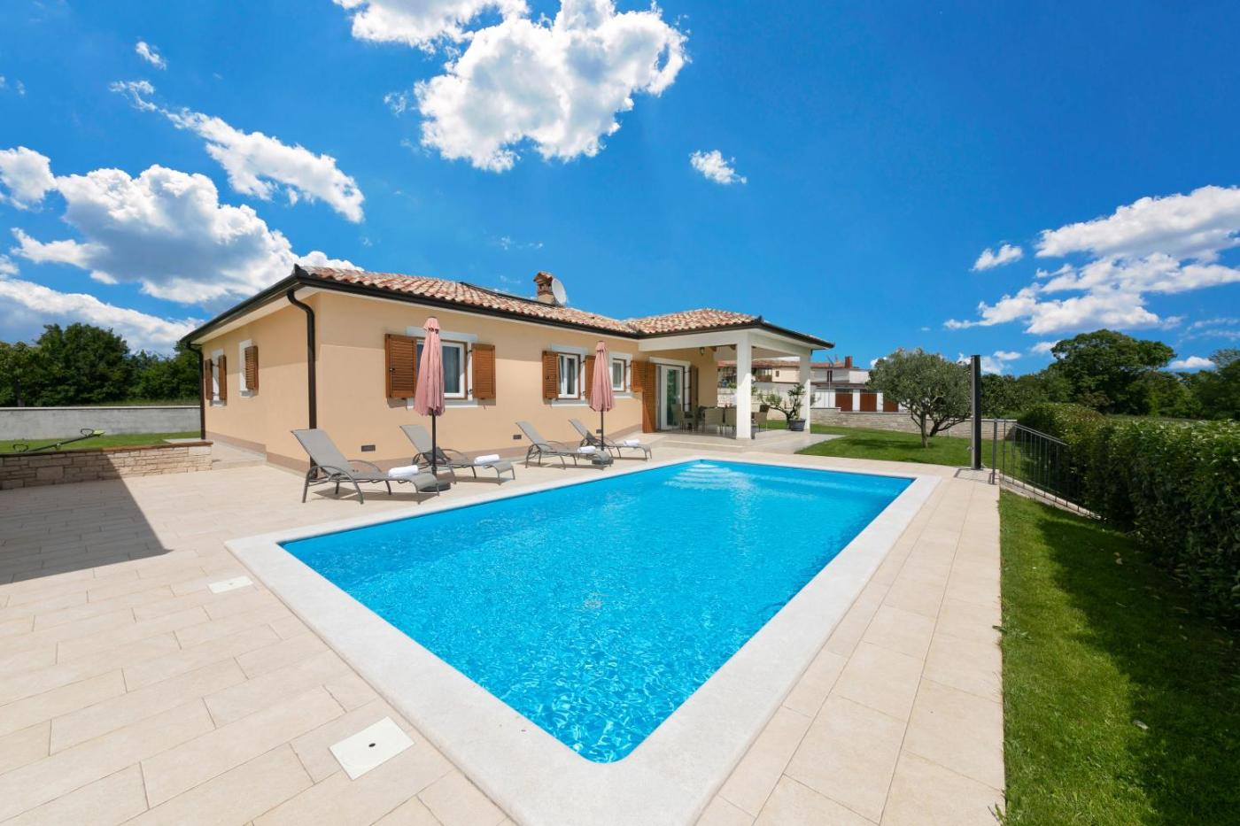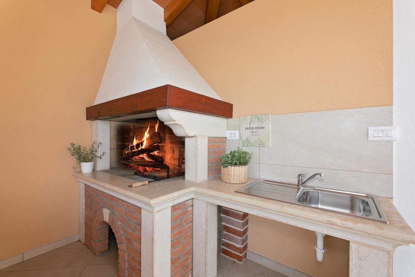 Willa z 3 sypialniami. This villa features a private pool and a fireplace. This air-conditioned villa features 1 living room, 3 separate bedrooms and 4 bathrooms with a shower. Guests will find a stovetop, a refrigerator, an oven and a tea and coffee maker in the well-fitted kitchen. The villa also comes with a barbecue. Boasting a terrace with garden views, this villa also features a washing machine and a flat-screen TV with cable channels. The unit has 5 beds. Willa - 6 osobowy. Powierzchnia pokoju ok.: 130 mkw.