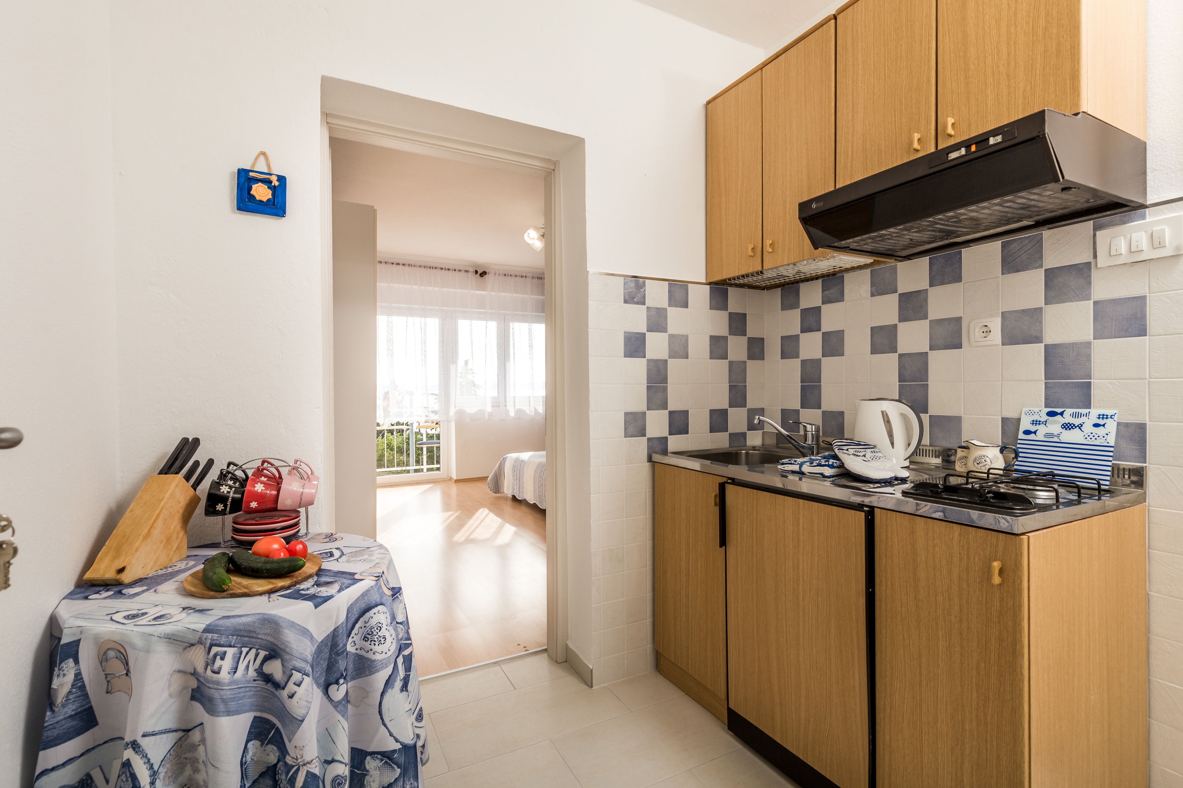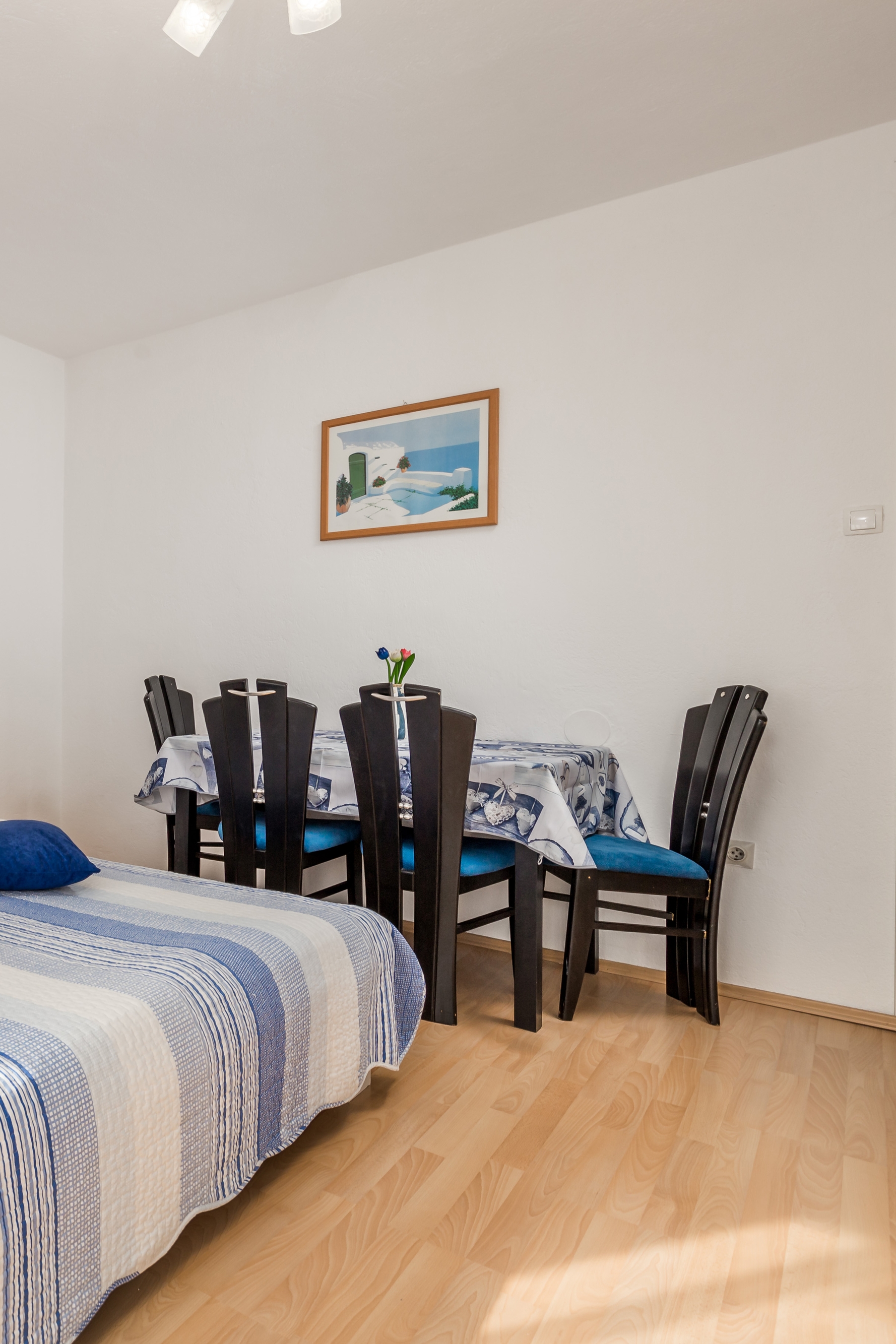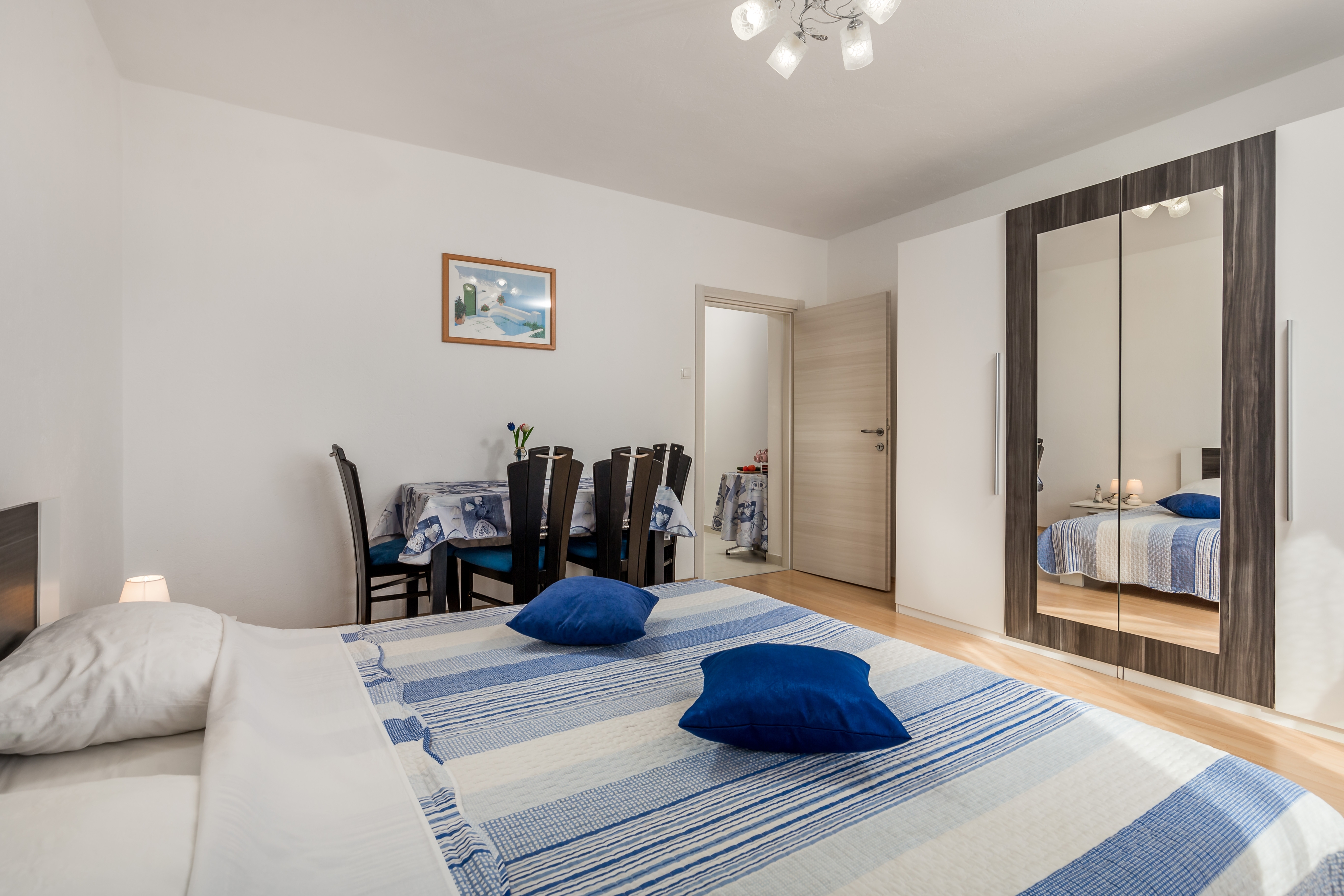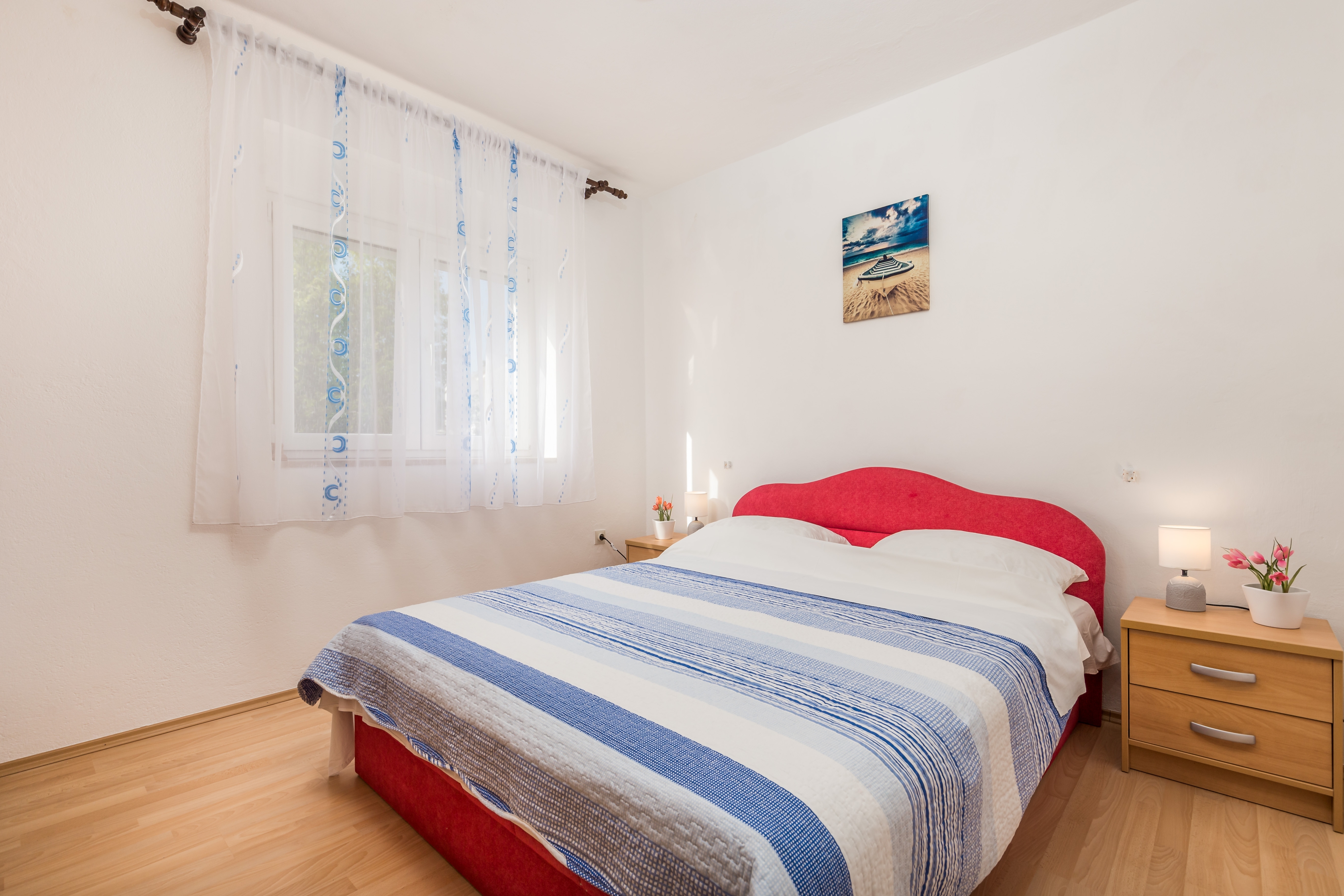 Apartament może przyjąć 4 gości. Łóżka znajdują się w sypialniach, których jest 1, oraz w pokoju dziennym, na powierzchni 38m2. Goście mają dostęp do balkonu, by korzystać z ciepłych, letnich wieczorów. Z apartamentu roztacza się widok na morze. Możliwość przygotowywania posiłków poprzez korzystanie ze wspólnego grilla. W kwaterze dozwolony jest pobyt zwierzęcia domowego, za dopłatą. WLICZONE W CENĘ: taksa pobytowa, sprzątanie końcowe, klimatyzacja, parking, internet, pranie bielizny, łóżeczko dziecięce, żelazko, deska do prasowania, suszarka do włosów. OBOWIĄZKOWE KOSZTY DODATKOWE: dopłata za krótki termin (procent dopłaty w zalezności od liczby noclegów: 30% - 1, 20% - 2, 10% - 3). NIEOBOWIĄZKOWE KOSZTY DODATKOWE: zwierzęta domowe (10,00 € za nocleg), dostawka (10,00 € za nocleg). Dostępność dodatkowych usług w rezerwowanym terminie oraz ich cenę (jeśli nie jest podana) należy sprawdzić wcześniej. Za dodatowe usługi, które nie zostały uwzględnione w kalkulacji ceny, płaci się bezpośrednio właścicielowi obiektu, pod warunkiem śe gość korzysta z tych usług. Zniżki od ceny podstawowej: bezpłatny dzień 14=13 (przy pobycie, trwającym co najmniej 14 dni, otrzymujecie jeden bezpłatny dzień na pobyt do 31.12.2026).