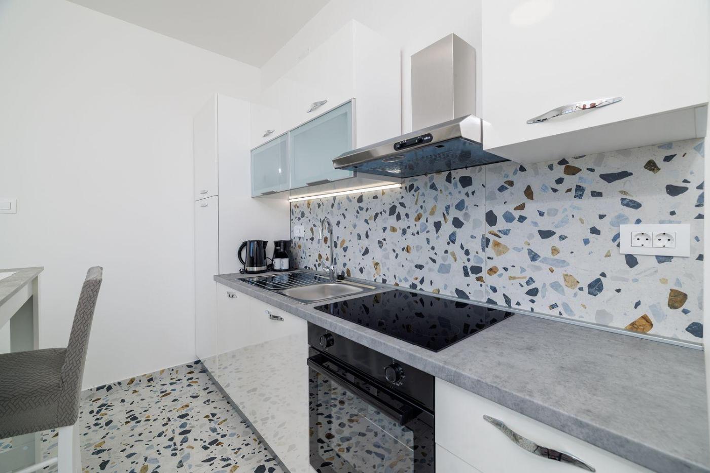 W apartamencie do dyspozycji gości przygotowano sypialnię (1), aneks kuchenny ze standardowym wyposażeniem, takim jak lodówka i piekarnik, a także łazienkę (1) z prysznicem. Wyposażenie obejmuje także telewizor z dostępem do kanałów kablowych. W apartamencie zapewniono ręczniki i pościel.