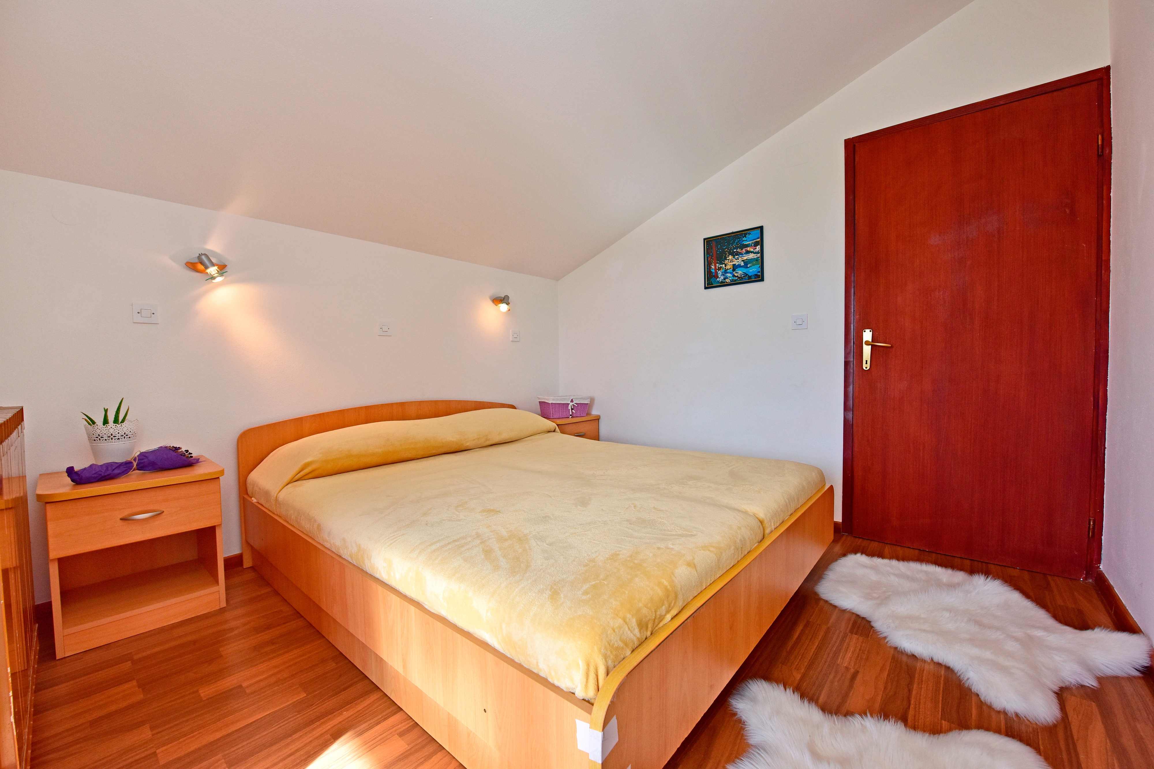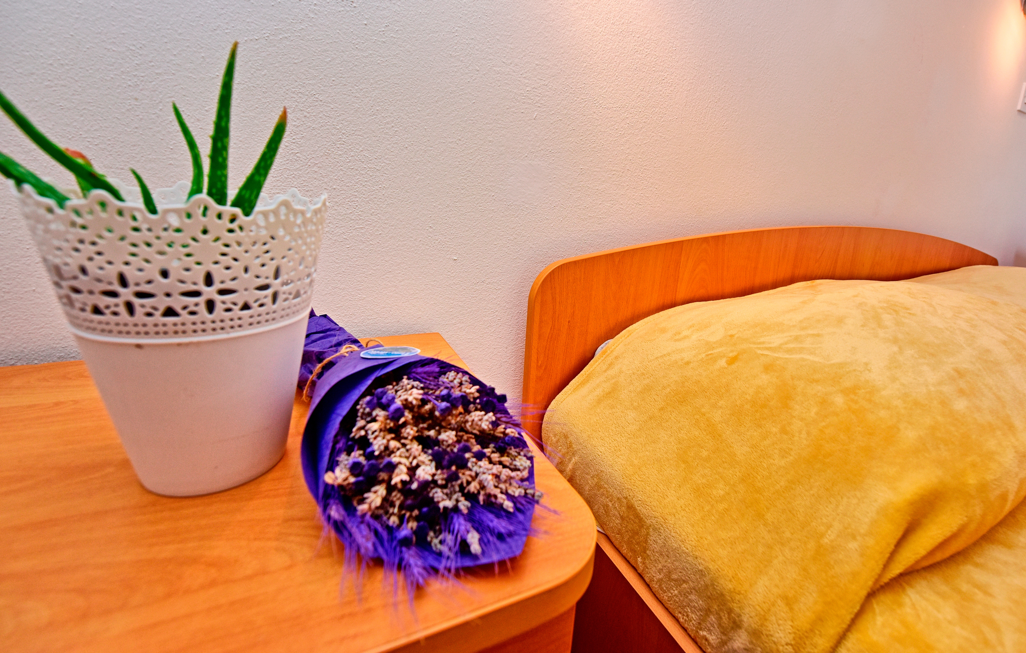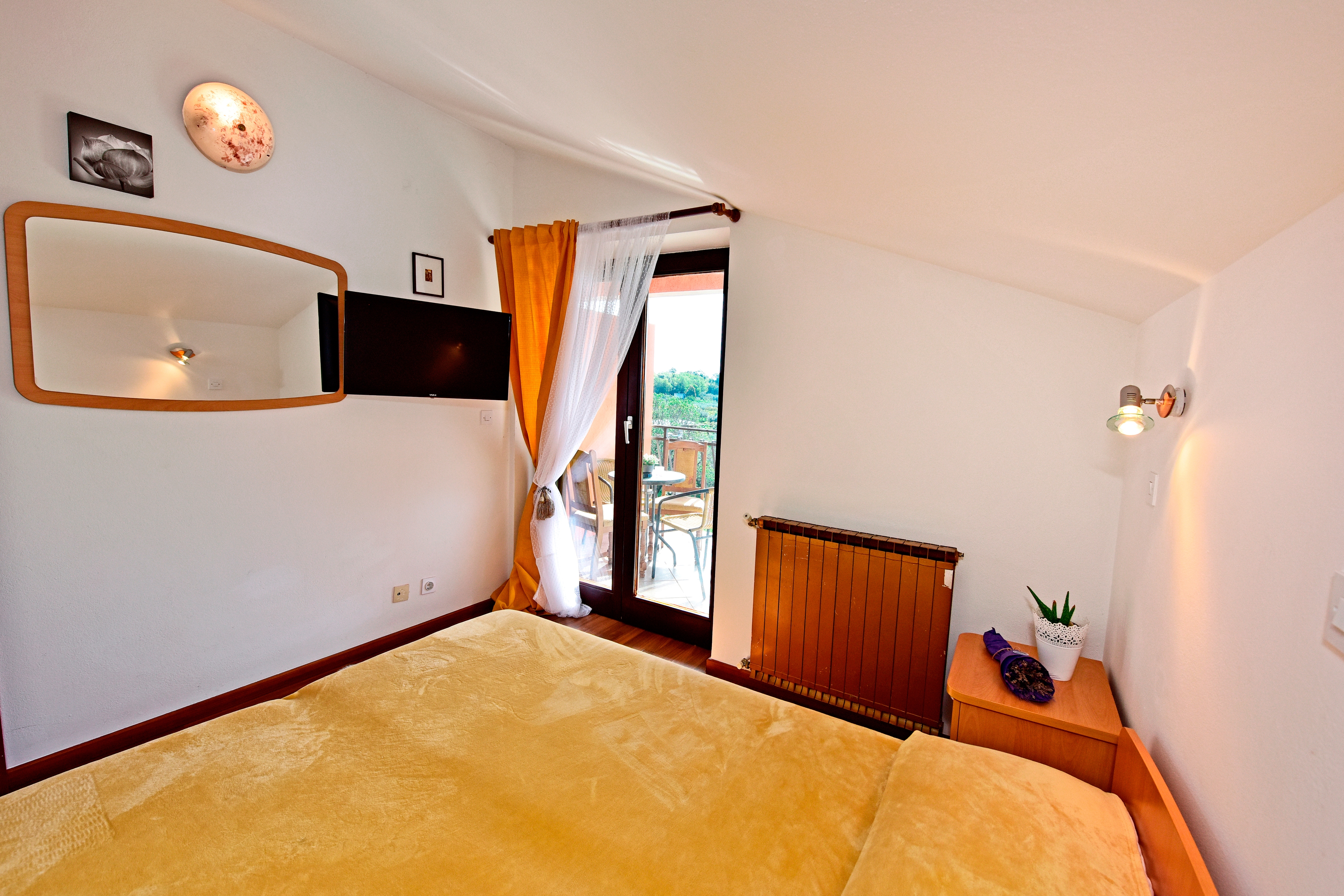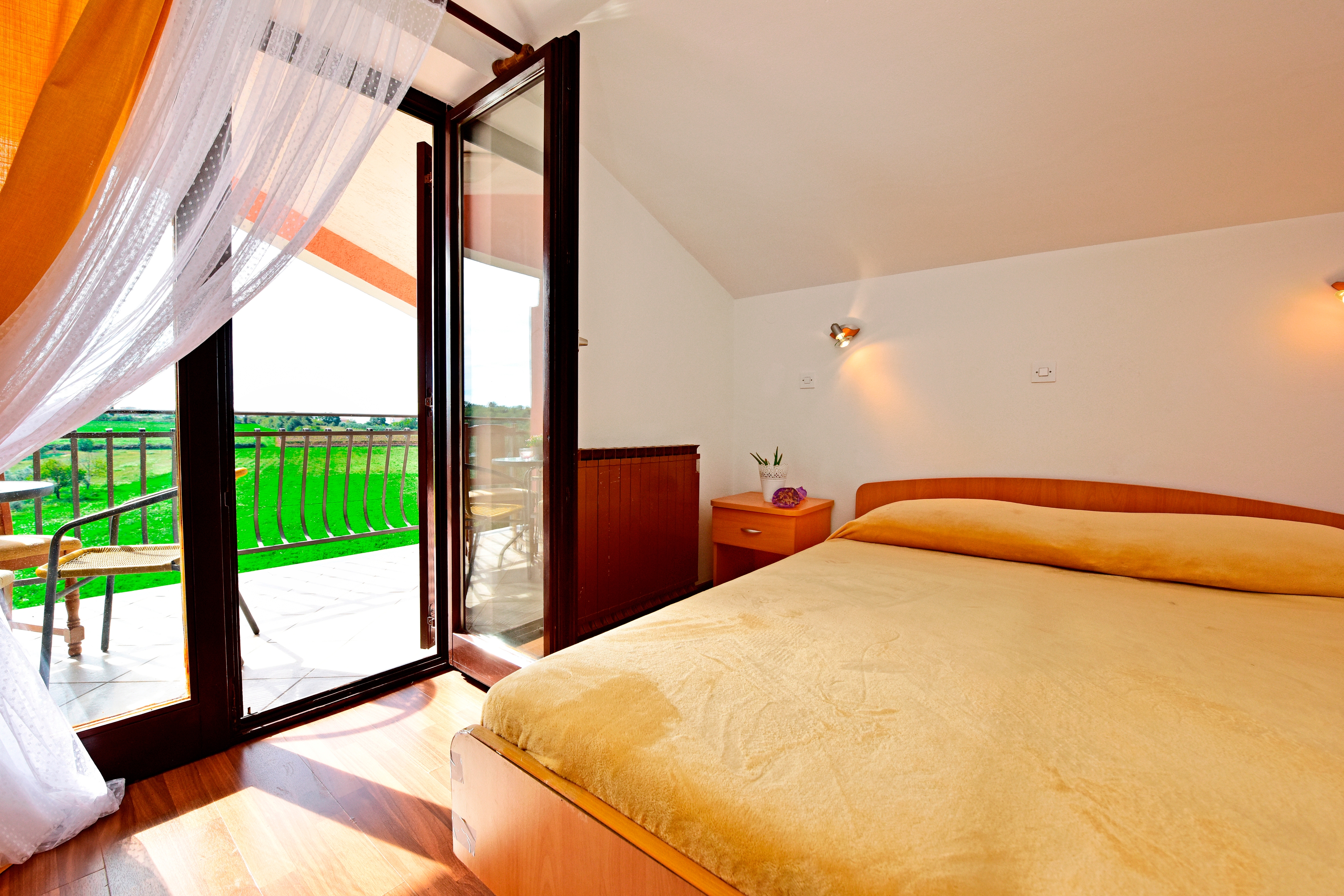Pokój może przyjąć 2 gości. Łóżka znajdują się w sypialniach, których jest 1, na powierzchni 13m2. Goście mają dostęp do tarasu, by korzystać z ciepłych, letnich wieczorów. Możliwość przygotowywania posiłków poprzez korzystanie ze wspólnego grilla. W trakcie swojego pobytu goście mogą korzystać ze wspólnego basenu. Rezerwowana kwatera to pokój z własną łazienką, bez możliwości korzystania z kuchni. W rezerwowanej kwaterze na miejscu jest pobierana kaucja (jej wysokość jest podana na stronie). WLICZONE W CENĘ: taksa pobytowa, sprzątanie końcowe, basen, parking, internet, parasol. OBOWIĄZKOWE KOSZTY DODATKOWE: depozyt (100,00 € jednorazowo), dopłata za krótki termin (procent dopłaty w zalezności od liczby noclegów: 30% - 1, 20% - 2, 10% - 3). Dostępność dodatkowych usług w rezerwowanym terminie oraz ich cenę (jeśli nie jest podana) należy sprawdzić wcześniej. Za dodatowe usługi, które nie zostały uwzględnione w kalkulacji ceny, płaci się bezpośrednio właścicielowi obiektu, pod warunkiem śe gość korzysta z tych usług.