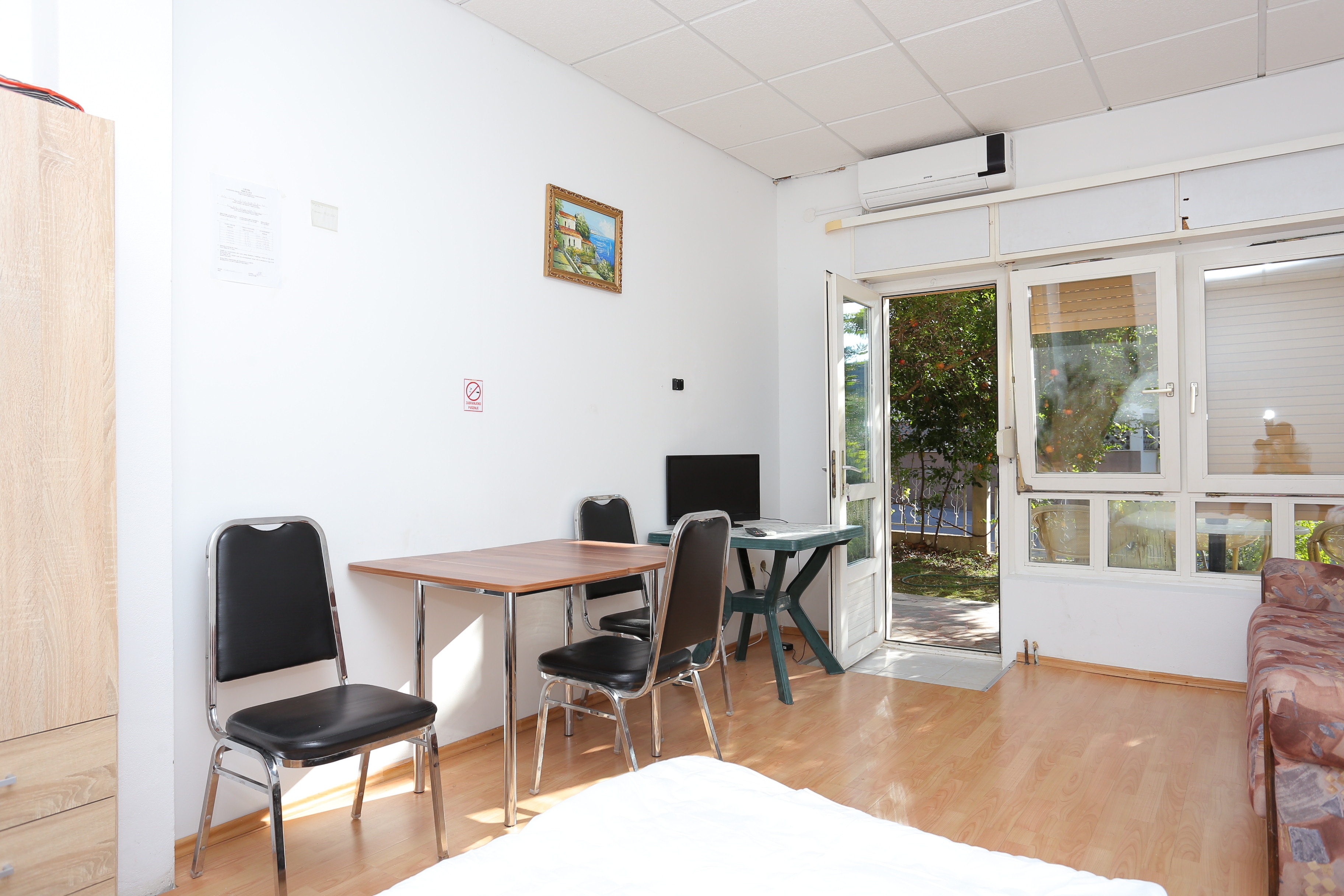 Studio może przyjąć 3 gości. Łóżka znajdują się w sypialniach, których jest 1, oraz w pokoju dziennym, na powierzchni 23m2. Goście mają dostęp do tarasu, by korzystać z ciepłych, letnich wieczorów. Możliwość przygotowywania posiłków poprzez korzystanie ze wspólnego grilla. WLICZONE W CENĘ: taksa pobytowa, sprzątanie końcowe, parking, internet, żelazko, deska do prasowania, suszarka do włosów, przenośny grill. NIEOBOWIĄZKOWE KOSZTY DODATKOWE: klimatyzacja (3,00 € za nocleg). Dostępność dodatkowych usług w rezerwowanym terminie oraz ich cenę (jeśli nie jest podana) należy sprawdzić wcześniej. Za dodatowe usługi, które nie zostały uwzględnione w kalkulacji ceny, płaci się bezpośrednio właścicielowi obiektu, pod warunkiem śe gość korzysta z tych usług.
