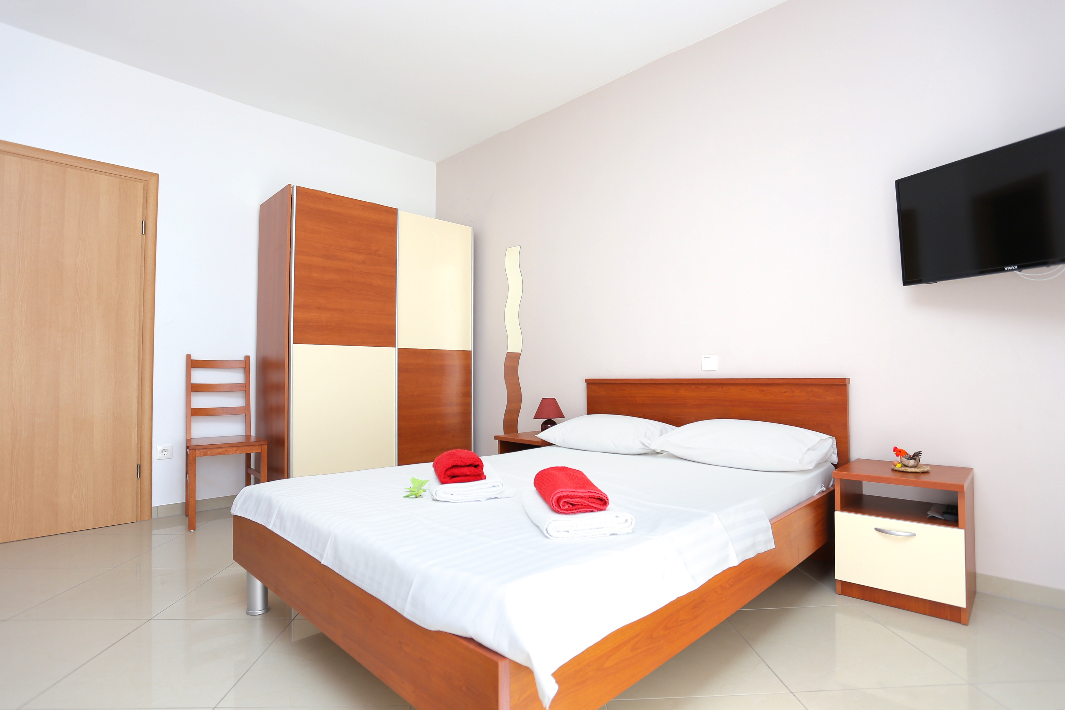 Studio może przyjąć 3 gości. Łóżka znajdują się w sypialniach, których jest 1, na powierzchni 26m2. Goście mają dostęp do balkonu, by korzystać z ciepłych, letnich wieczorów. Z apartamentu typu studio roztacza się widok na morze. Możliwość przygotowywania posiłków poprzez korzystanie ze wspólnego grilla. W kwaterze dozwolony jest pobyt zwierzęcia domowego, za dopłatą. WLICZONE W CENĘ: taksa pobytowa, sprzątanie końcowe, klimatyzacja, parking, internet, łóżeczko dziecięce, żelazko, deska do prasowania, suszarka do włosów. OBOWIĄZKOWE KOSZTY DODATKOWE: dopłata za krótki termin (procent dopłaty w zalezności od liczby noclegów: 30% - 1, 20% - 2, 10% - 3). NIEOBOWIĄZKOWE KOSZTY DODATKOWE: pranie bielizny (5,00 € pranie), zwierzęta domowe (5,00 € za nocleg). Dostępność dodatkowych usług w rezerwowanym terminie oraz ich cenę (jeśli nie jest podana) należy sprawdzić wcześniej. Za dodatowe usługi, które nie zostały uwzględnione w kalkulacji ceny, płaci się bezpośrednio właścicielowi obiektu, pod warunkiem śe gość korzysta z tych usług.