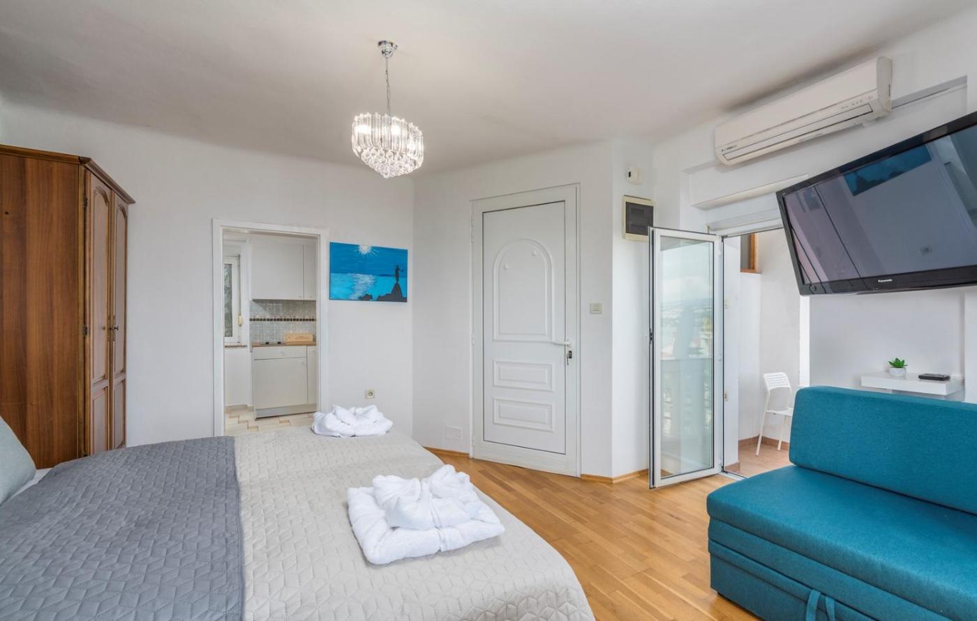 Apartament typu studio z widokiem na morze. The air-conditioned apartment has 1 bedroom and 1 bathroom with a shower and a hairdryer. In the well-equipped kitchen, guests will find a stovetop, a refrigerator, kitchenware and a tea and coffee maker. Boasting a balcony with sea views, this apartment also offers a washing machine and a TV. The unit has 1 bed. Apartament - 2 osobowy. Powierzchnia pokoju ok.: 30 mkw.