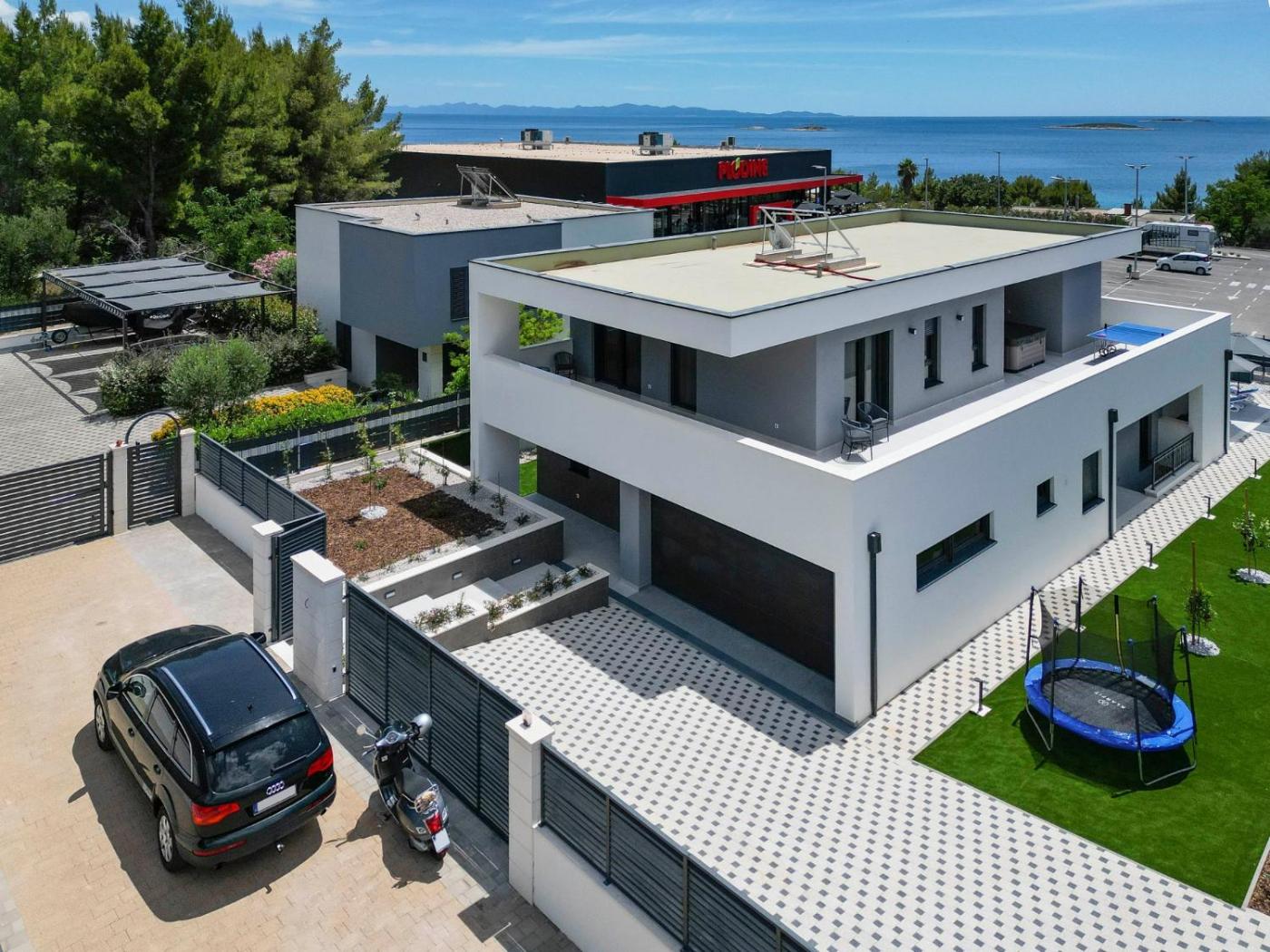W willi zapewniono taras, kilka sypialni (4), salon, kuchnię ze standardowym wyposażeniem, a także kilka łazienek (5) z prysznicem i wanną z hydromasażem. Goście mogą podziwiać widok na morze. Wyposażenie obejmuje też telewizor z dostępem do kanałów satelitarnych. W willi zapewniono ręczniki i pościel.