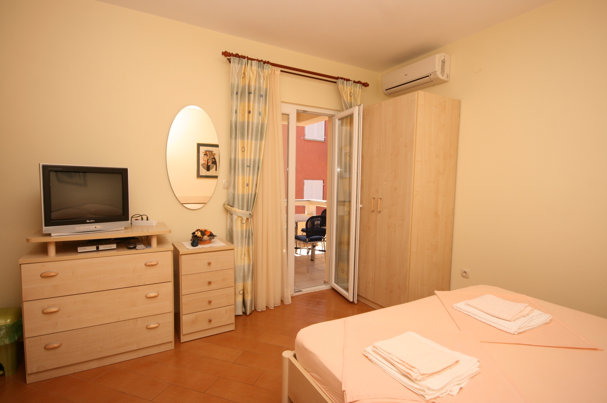 Studio może przyjąć 2 gości. Łóżka znajdują się w sypialniach, których jest 1, na powierzchni 22m2. Goście mają dostęp do tarasu, by korzystać z ciepłych, letnich wieczorów. Możliwość przygotowywania posiłków poprzez korzystanie ze wspólnego grilla. W kwaterze dozwolony jest pobyt zwierzęcia domowego, za dopłatą. W rezerwowanej kwaterze na miejscu jest pobierana kaucja (jej wysokość jest podana na stronie). WLICZONE W CENĘ: taksa pobytowa, sprzątanie końcowe, klimatyzacja, parking, internet, żelazko, suszarka do włosów. OBOWIĄZKOWE KOSZTY DODATKOWE: depozyt (200,00 € jednorazowo), dopłata za krótki termin (procent dopłaty w zalezności od liczby noclegów: 30% - 1, 20% - 2, 10% - 3). NIEOBOWIĄZKOWE KOSZTY DODATKOWE: pranie bielizny (5,00 € pranie), zwierzęta domowe (20,00 € za nocleg). Dostępność dodatkowych usług w rezerwowanym terminie oraz ich cenę (jeśli nie jest podana) należy sprawdzić wcześniej. Za dodatowe usługi, które nie zostały uwzględnione w kalkulacji ceny, płaci się bezpośrednio właścicielowi obiektu, pod warunkiem śe gość korzysta z tych usług. Zniżki od ceny podstawowej: bezpłatny dzień 14=13 (przy pobycie, trwającym co najmniej 14 dni, otrzymujecie jeden bezpłatny dzień na pobyt do 31.12.2026).
