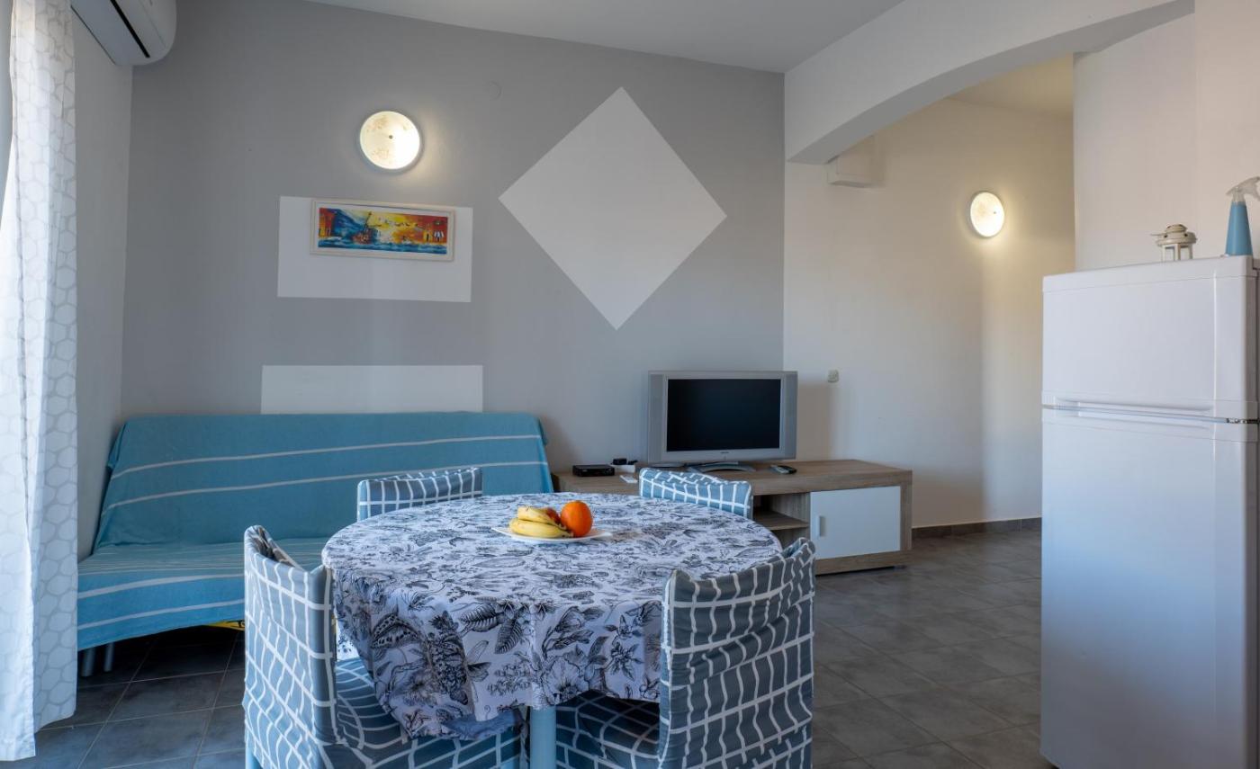 Apartament z 2 sypialniami. This air-conditioned apartment comprises 1 living room, 2 separate bedrooms and 1 bathroom with a shower. The apartments kitchen, which features kitchenware and a microwave, is available for cooking and storing food. Featuring a terrace with sea views, this apartment also provides a seating area and a flat-screen TV. The unit offers 3 beds. Apartament - 5 osobowy. Powierzchnia pokoju ok.: 60 mkw.