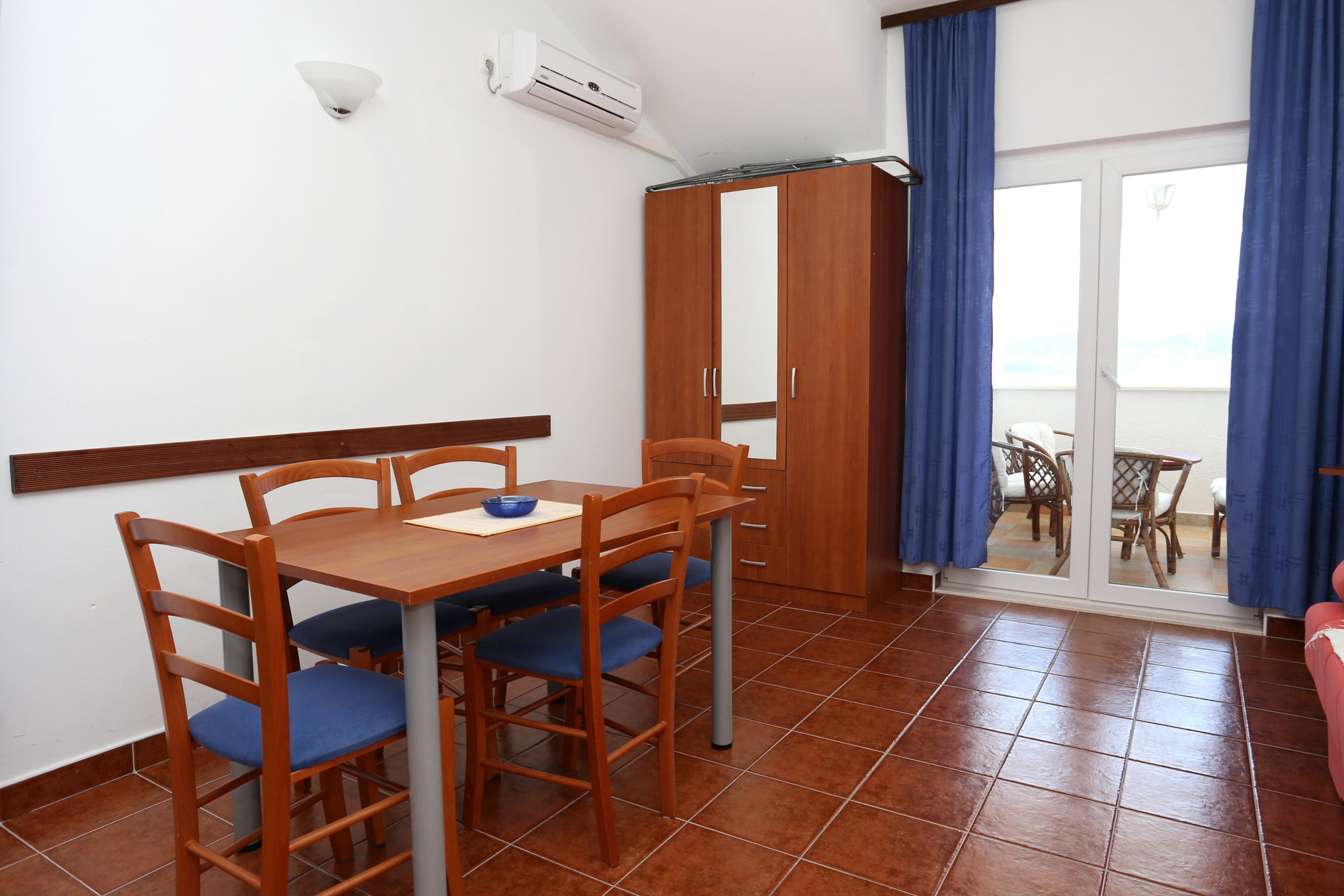 Apartament może przyjąć 4 gości. Łóżka znajdują się w sypialniach, których jest 1, oraz w pokoju dziennym, na powierzchni 39m2. Goście mają dostęp do tarasu, by korzystać z ciepłych, letnich wieczorów. Z apartamentu roztacza się widok na morze. WLICZONE W CENĘ: taksa pobytowa, sprzątanie końcowe, klimatyzacja, parking, internet, miejsce do cumowania łodzi, żelazko, deska do prasowania, suszarka do włosów. OBOWIĄZKOWE KOSZTY DODATKOWE: dopłata za krótki termin (procent dopłaty w zalezności od liczby noclegów: 30% - 1, 20% - 2, 10% - 3). Dostępność dodatkowych usług w rezerwowanym terminie oraz ich cenę (jeśli nie jest podana) należy sprawdzić wcześniej. Za dodatowe usługi, które nie zostały uwzględnione w kalkulacji ceny, płaci się bezpośrednio właścicielowi obiektu, pod warunkiem śe gość korzysta z tych usług.