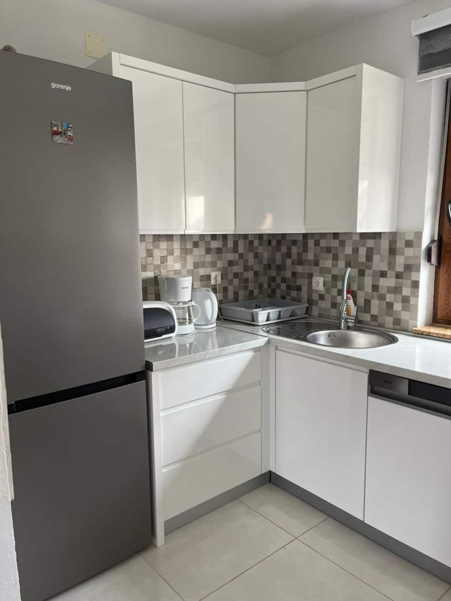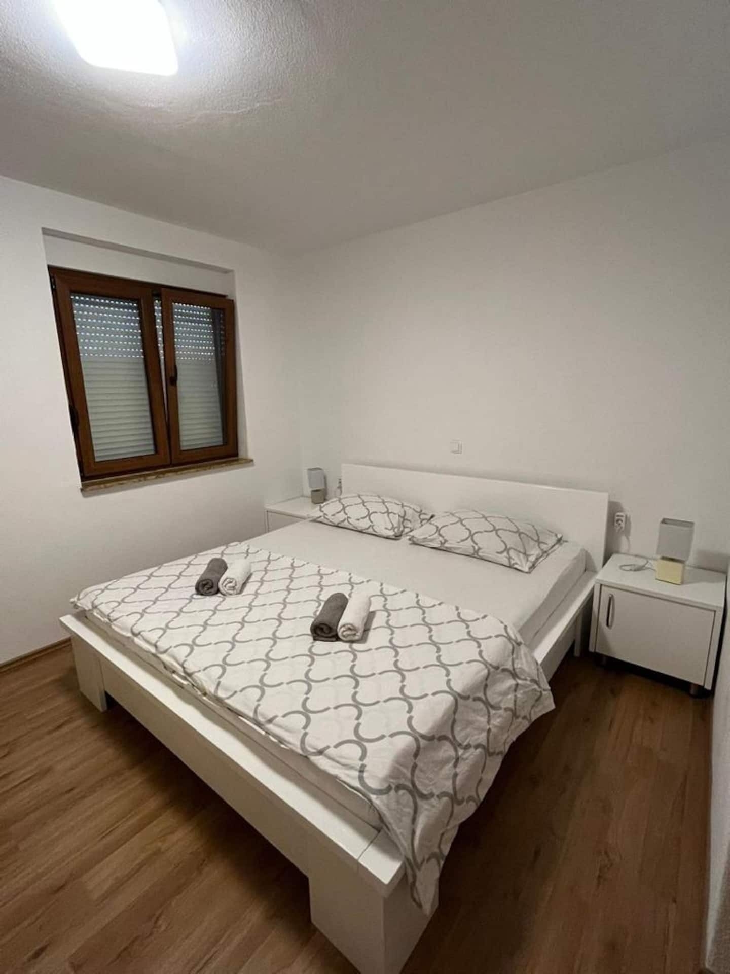 Apartament może przyjąć 4 gości. Łóżka znajdują się w sypialniach, których jest 1, oraz w pokoju dziennym, na powierzchni 55m2. Goście mają dostęp do tarasu, by korzystać z ciepłych, letnich wieczorów. Z apartamentu roztacza się widok na morze. WLICZONE W CENĘ: taksa pobytowa, sprzątanie końcowe, klimatyzacja, parking, internet, łóżeczko dziecięce, żelazko, deska do prasowania, suszarka do włosów. OBOWIĄZKOWE KOSZTY DODATKOWE: dopłata za krótki termin (procent dopłaty w zalezności od liczby noclegów: 30% - 1, 20% - 2, 10% - 3). Dostępność dodatkowych usług w rezerwowanym terminie oraz ich cenę (jeśli nie jest podana) należy sprawdzić wcześniej. Za dodatowe usługi, które nie zostały uwzględnione w kalkulacji ceny, płaci się bezpośrednio właścicielowi obiektu, pod warunkiem śe gość korzysta z tych usług. Zniżki od ceny podstawowej: bezpłatny dzień 14=13 (przy pobycie, trwającym co najmniej 14 dni, otrzymujecie jeden bezpłatny dzień na pobyt do 31.12.2026).