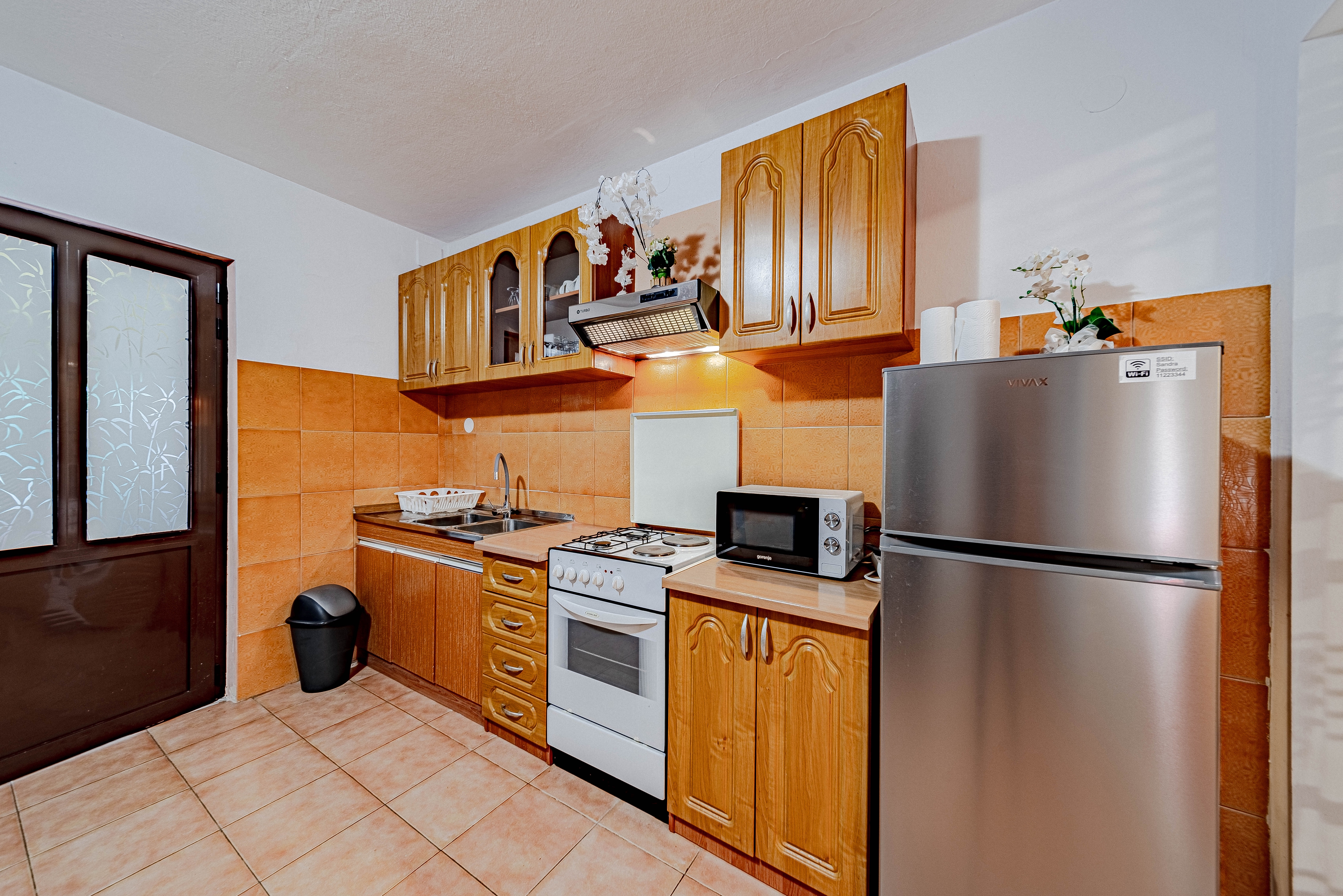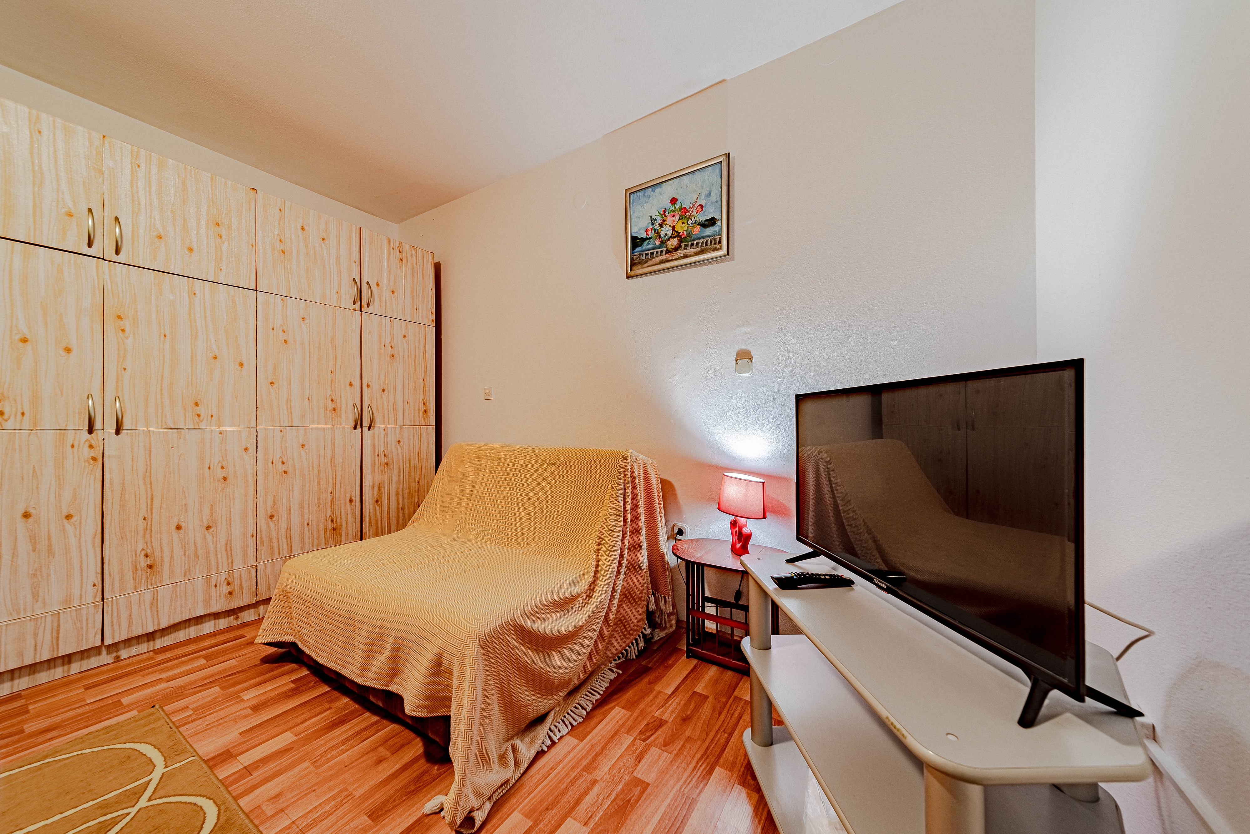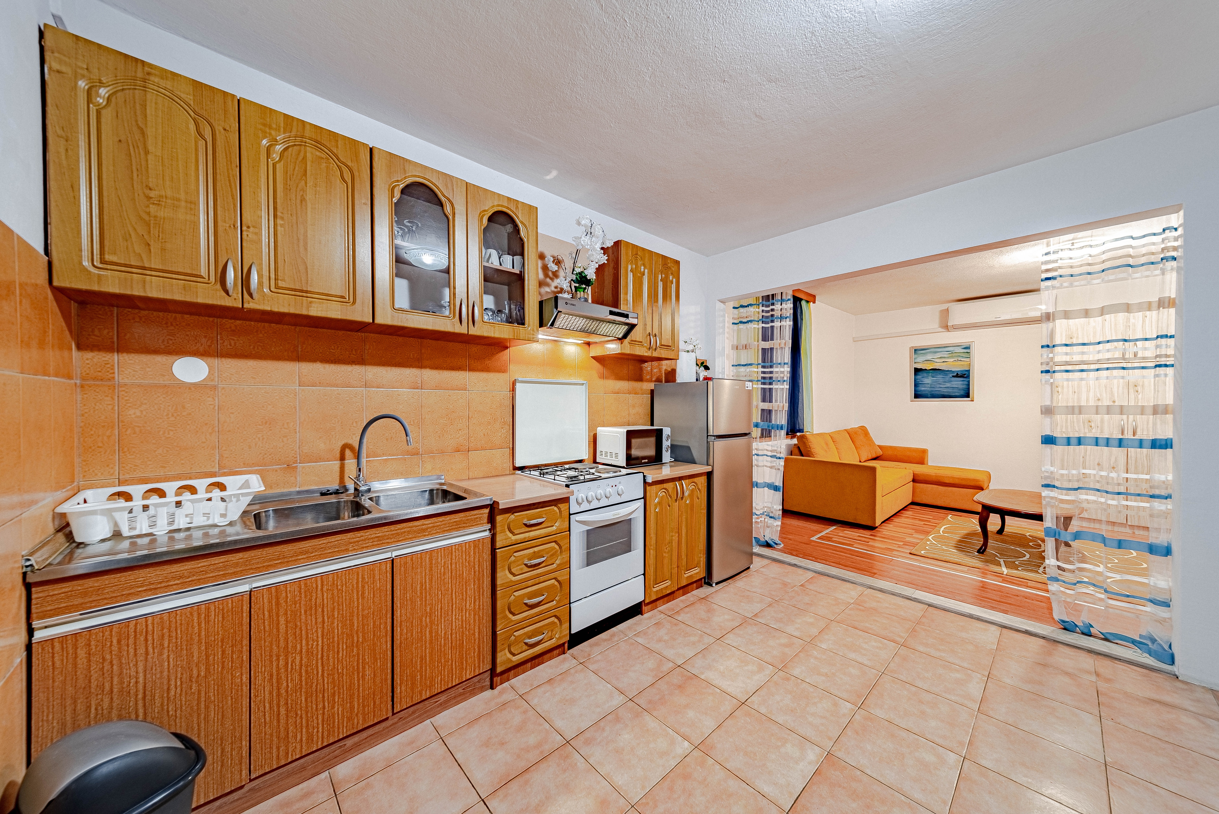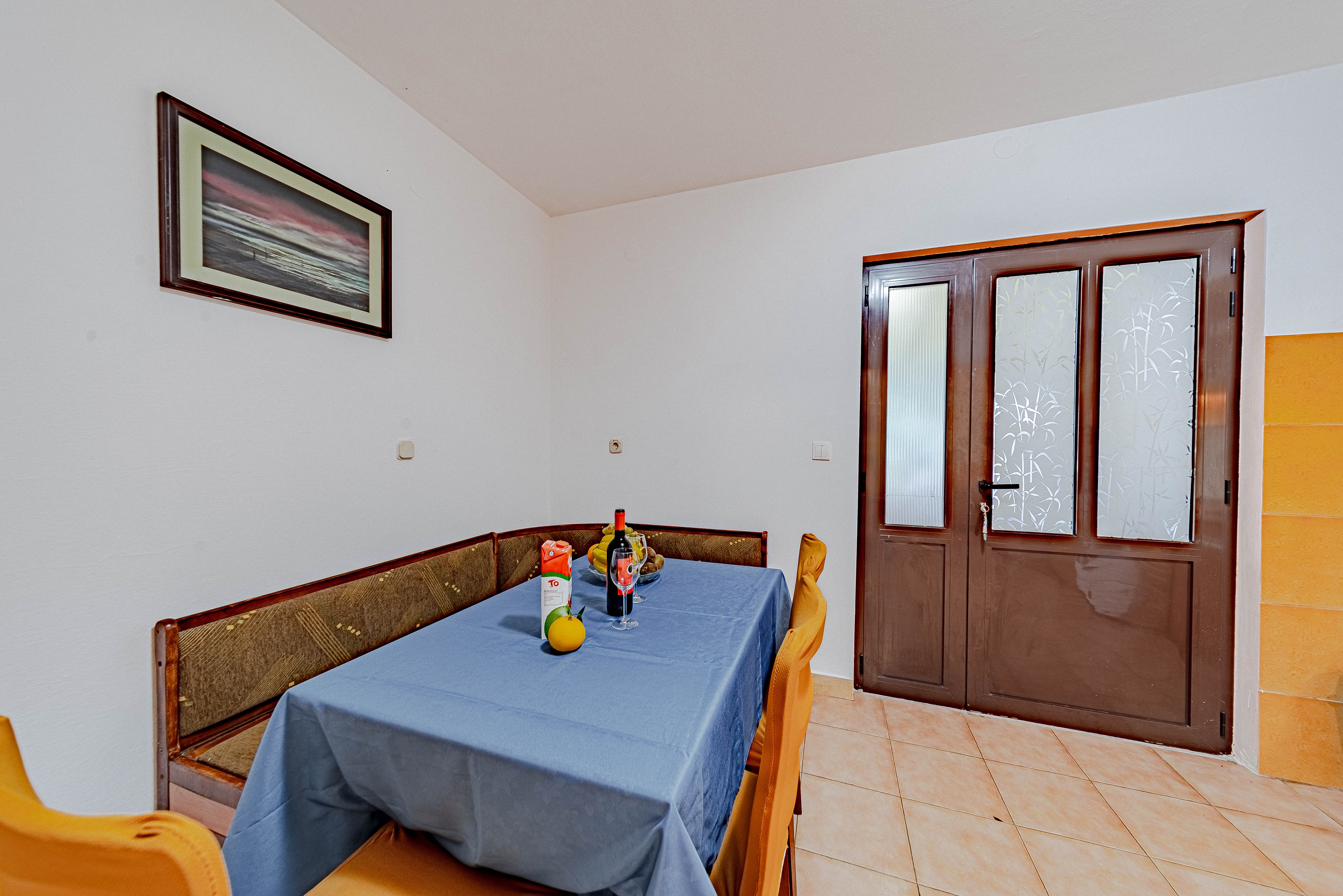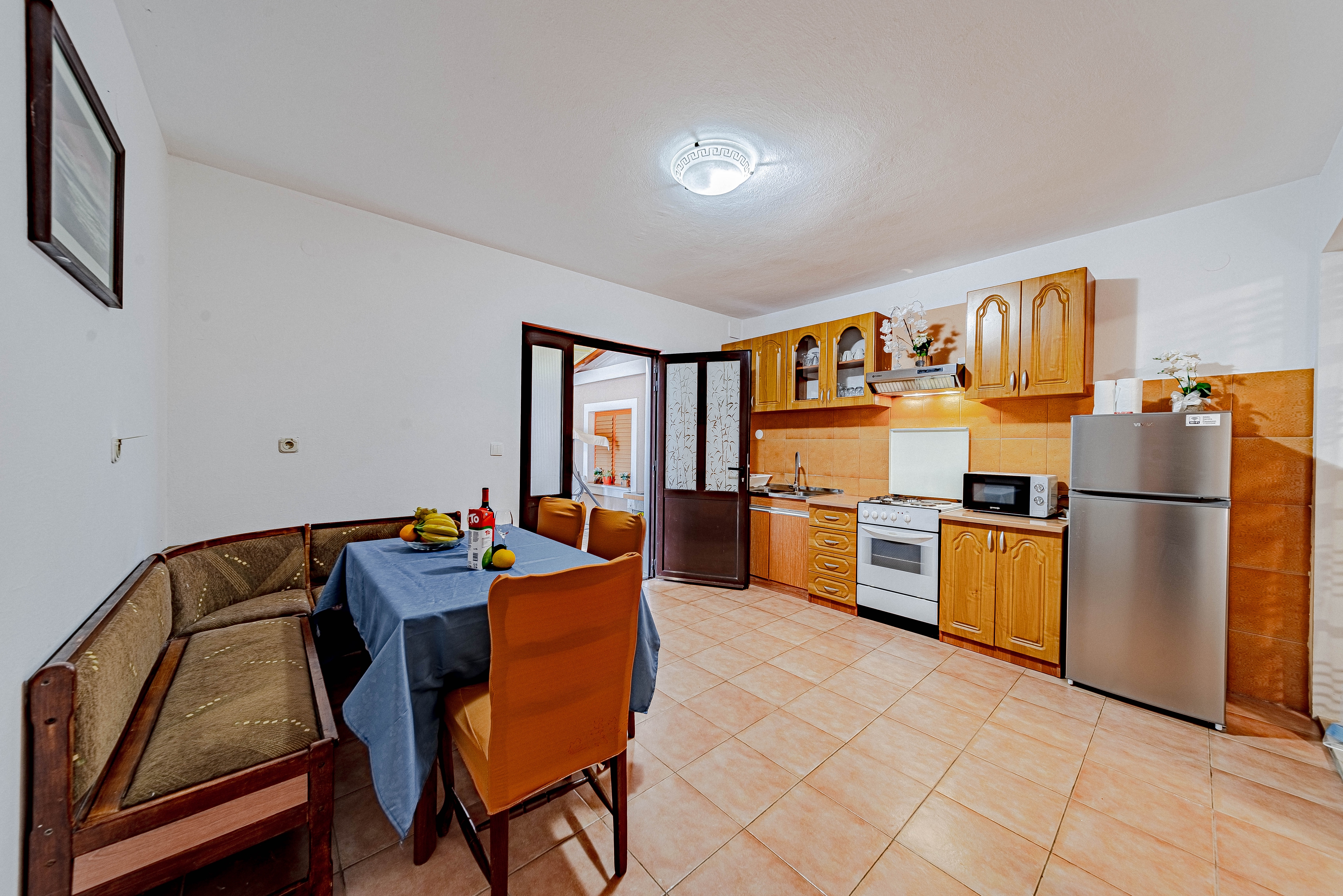 Apartament może przyjąć 5 gości. Łóżka znajdują się w sypialniach, których jest 1, oraz w pokoju dziennym, na powierzchni 50m2. Goście mają dostęp do tarasu, by korzystać z ciepłych, letnich wieczorów. Możliwość przygotowywania posiłków poprzez korzystanie ze wspólnego grilla. W kwaterze dozwolony jest pobyt zwierzęcia domowego, za dopłatą. WLICZONE W CENĘ: taksa pobytowa, sprzątanie końcowe, parking, internet. NIEOBOWIĄZKOWE KOSZTY DODATKOWE: klimatyzacja (10,00 € za nocleg), zwierzęta domowe (10,00 € za nocleg). Dostępność dodatkowych usług w rezerwowanym terminie oraz ich cenę (jeśli nie jest podana) należy sprawdzić wcześniej. Za dodatowe usługi, które nie zostały uwzględnione w kalkulacji ceny, płaci się bezpośrednio właścicielowi obiektu, pod warunkiem śe gość korzysta z tych usług. Zniżki od ceny podstawowej: bezpłatny dzień 14=13 (przy pobycie, trwającym co najmniej 14 dni, otrzymujecie jeden bezpłatny dzień na pobyt do 31.12.2026).