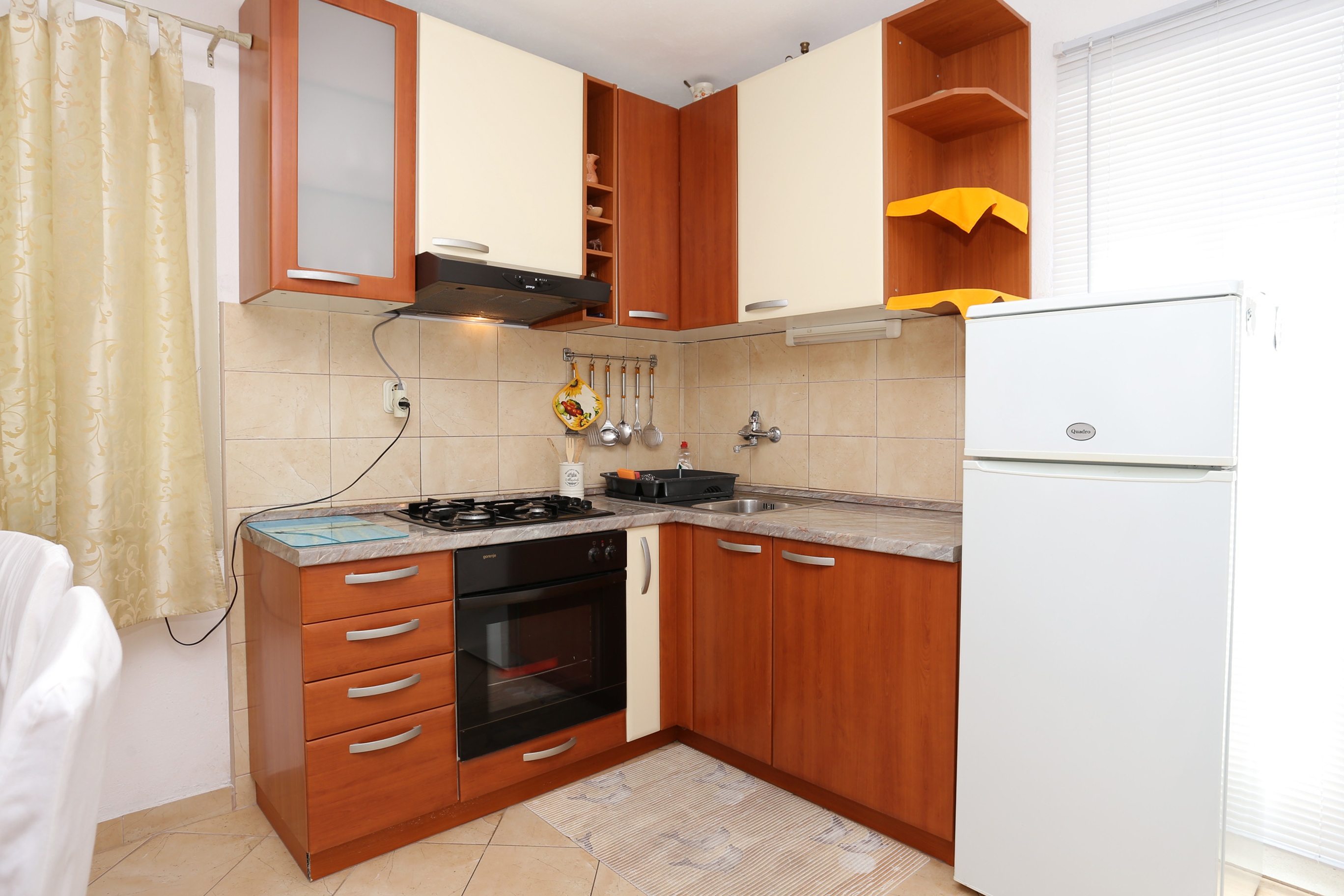 Apartament może przyjąć 5 gości. Łóżka znajdują się w sypialniach, których jest 2, oraz w pokoju dziennym, na powierzchni 50m2. Goście mają dostęp do tarasu, by korzystać z ciepłych, letnich wieczorów. Możliwość przygotowywania posiłków poprzez korzystanie ze wspólnego grilla. WLICZONE W CENĘ: taksa pobytowa, sprzątanie końcowe, parking, internet, żelazko, deska do prasowania, suszarka do włosów. NIEOBOWIĄZKOWE KOSZTY DODATKOWE: klimatyzacja (5,00 € za nocleg). Dostępność dodatkowych usług w rezerwowanym terminie oraz ich cenę (jeśli nie jest podana) należy sprawdzić wcześniej. Za dodatowe usługi, które nie zostały uwzględnione w kalkulacji ceny, płaci się bezpośrednio właścicielowi obiektu, pod warunkiem śe gość korzysta z tych usług.
