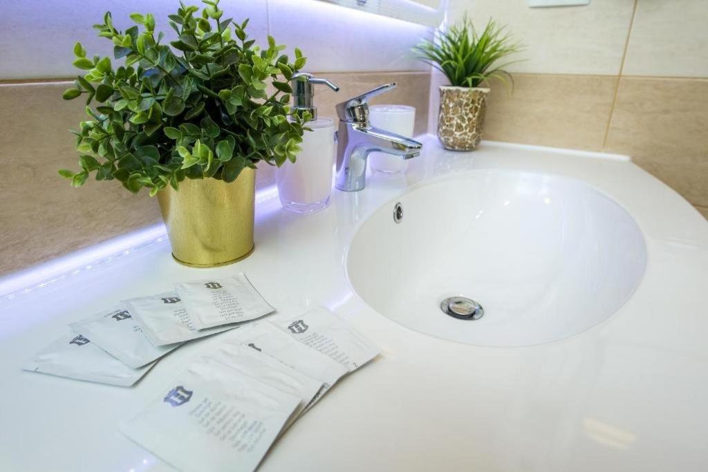 W miejscach zakwaterowania gości oraz ważnych częściach wspólnych znajdują się środki do dezynfekcji rąk
