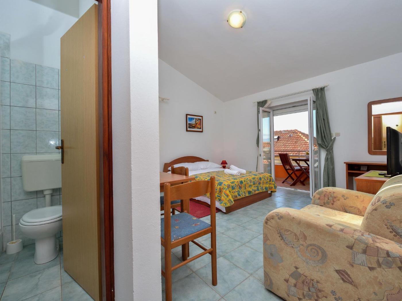 Studio. In the kitchen, guests will find a stovetop, a refrigerator, kitchenware and a microwave. This studio includes a TV with satellite channels, a private bathroom as well as a patio. The unit offers 2 beds. Studio - 3 osobowy. Powierzchnia pokoju ok.: 23 mkw.