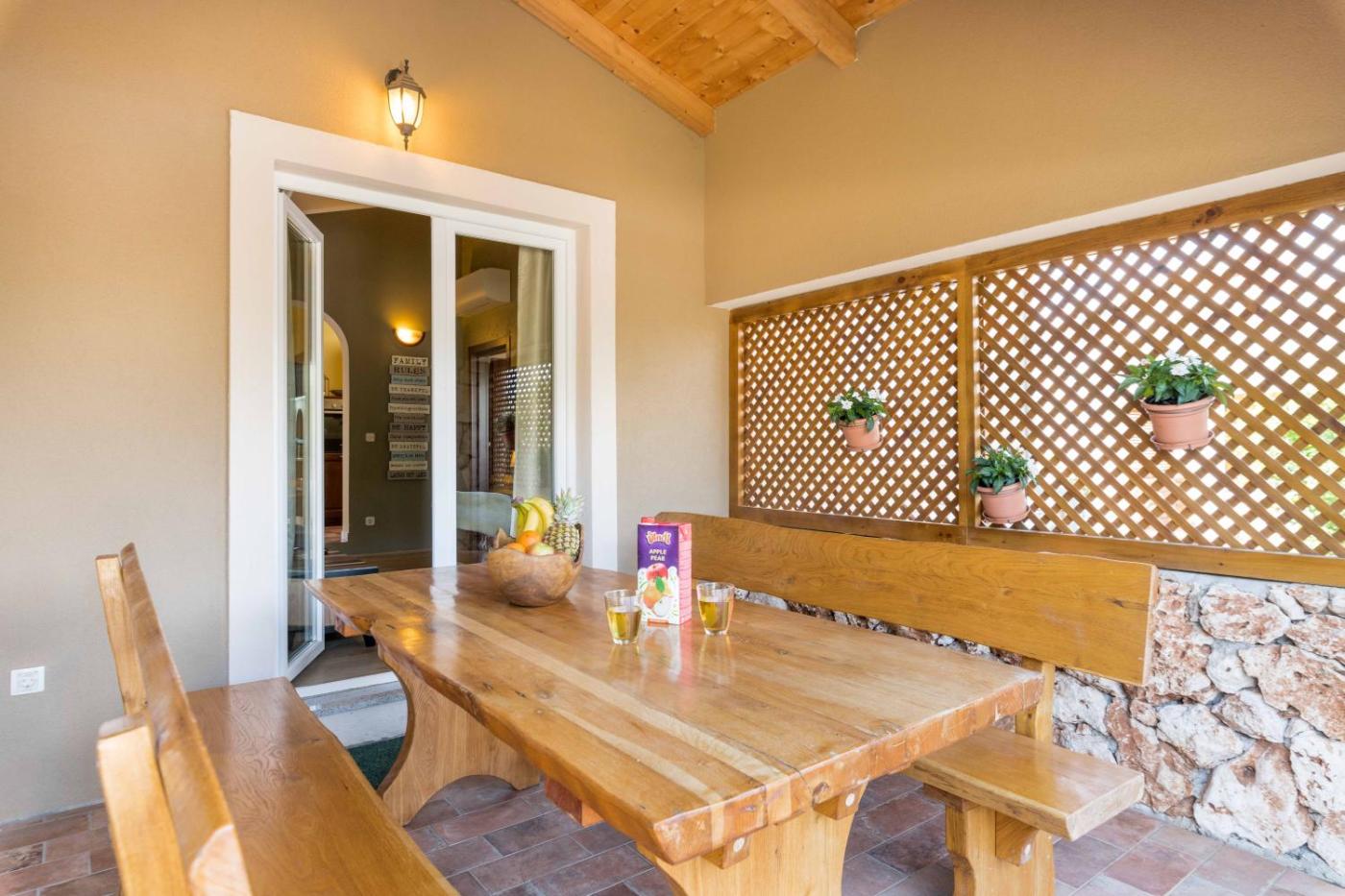 W domu wakacyjnym zapewniono kilka sypialni (2), łazienkę (1), pościel, ręczniki, jadalnię oraz kuchnię z pełnym wyposażeniem. Do dyspozycji Gości jest także telewizor z płaskim ekranem z dostępem do kanałów satelitarnych oraz taras z widokiem na basen.