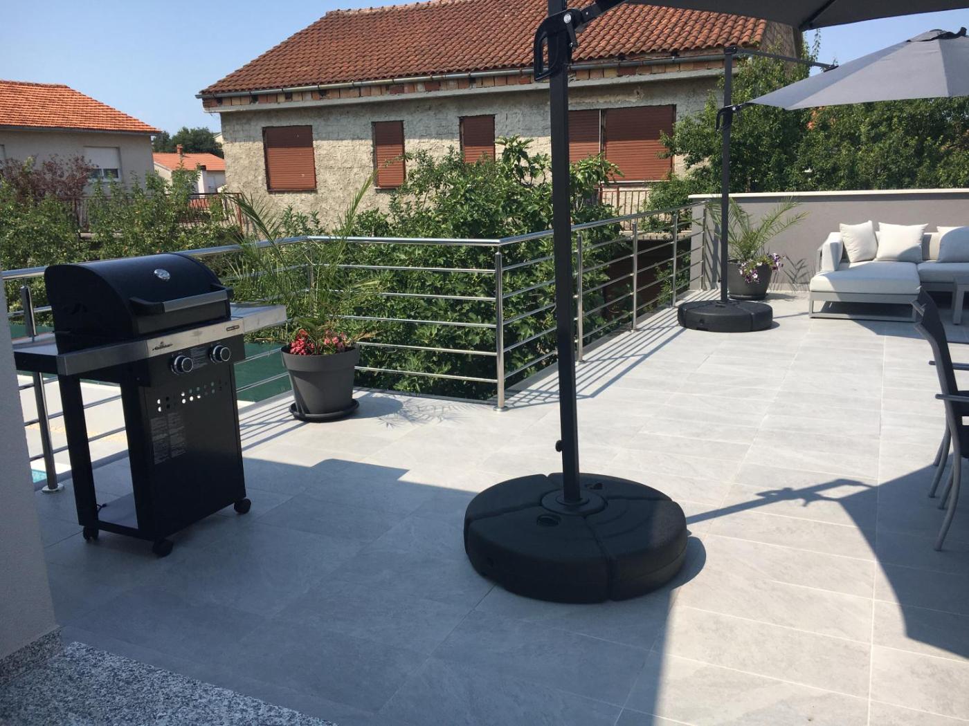 Apartament z 2 sypialniami. The private pool is the special feature of this apartment. Guests will find a stovetop, a refrigerator, a dishwasher and kitchenware in the kitchen. The apartment also provides guests with a barbecue. The spacious apartment provides air conditioning, a washing machine, a terrace with garden views as well as a shared bathroom featuring a shower. The unit offers 4 beds. Apartament - 6 osobowy. Powierzchnia pokoju ok.: 90 mkw. ;