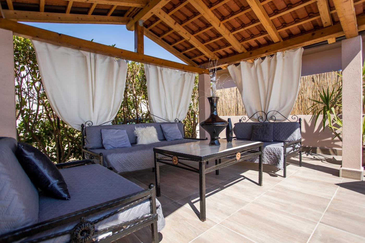 W apartamencie zapewniono taras, kilka sypialni (3), salon, kuchnię ze standardowym wyposażeniem, a także łazienkę (1) z bidetem i prysznicem. Goście mogą podziwiać widok na ogród. Wyposażenie obejmuje też telewizor z płaskim ekranem z dostępem do kanałów satelitarnych. W apartamencie zapewniono ręczniki i pościel.