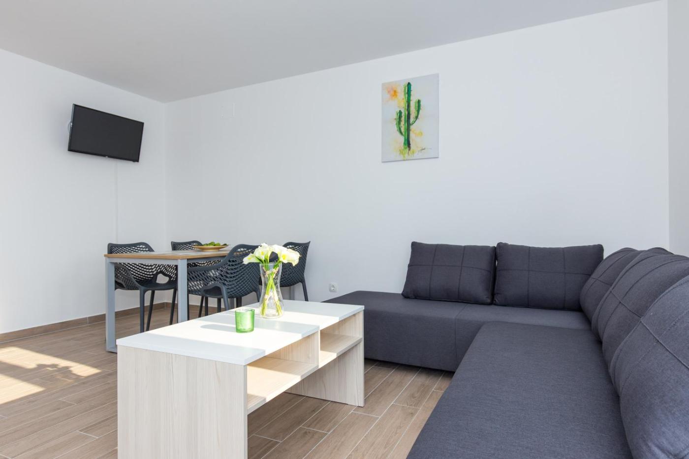 Apartament typu Deluxe. This air-conditioned apartment features 1 living room, 1 separate bedroom and 1 bathroom with a shower. The fully equipped kitchen has a stovetop, a refrigerator, a dishwasher and kitchenware. Boasting a terrace with sea views, this apartment also features a tea and coffee maker and a flat-screen TV with satellite channels. The unit has 2 beds. Apartament - 4 osobowy. Powierzchnia pokoju ok.: 47 mkw. ;