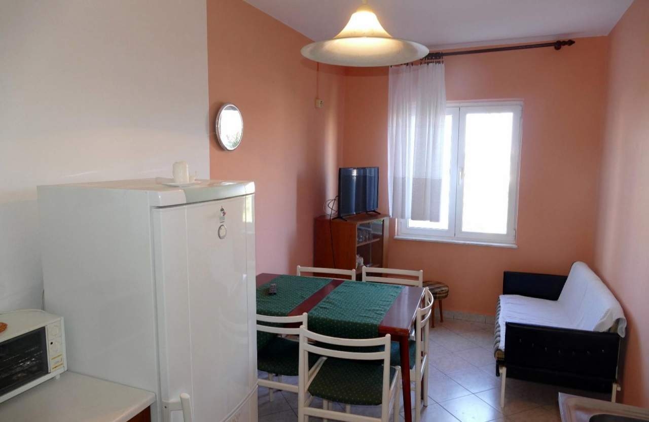 Apartament może przyjąć 5 gości. Łóżka znajdują się w sypialniach, których jest 2, na powierzchni 54m2. Goście mają dostęp do tarasu, by korzystać z ciepłych, letnich wieczorów. Z apartamentu roztacza się widok na morze. Możliwość przygotowywania posiłków poprzez korzystanie ze wspólnego grilla. W kwaterze dozwolony jest pobyt zwierzęcia domowego, za dopłatą. WLICZONE W CENĘ: taksa pobytowa, sprzątanie końcowe, klimatyzacja, parking, internet. OBOWIĄZKOWE KOSZTY DODATKOWE: dopłata za krótki termin (procent dopłaty w zalezności od liczby noclegów: 30% - 1, 20% - 2, 10% - 3). NIEOBOWIĄZKOWE KOSZTY DODATKOWE: miejsce do cumowania łodzi (6,00 € za nocleg), zwierzęta domowe (10,00 € za nocleg). Dostępność dodatkowych usług w rezerwowanym terminie oraz ich cenę (jeśli nie jest podana) należy sprawdzić wcześniej. Za dodatowe usługi, które nie zostały uwzględnione w kalkulacji ceny, płaci się bezpośrednio właścicielowi obiektu, pod warunkiem śe gość korzysta z tych usług.