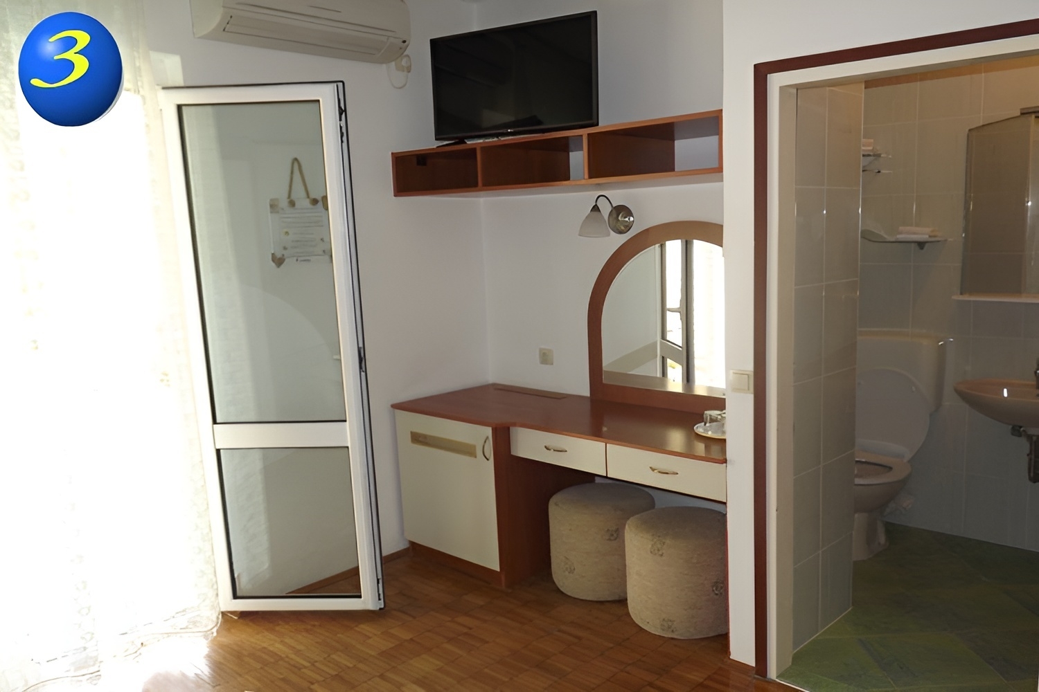 Pokój może przyjąć 2 gości. Łóżka znajdują się w sypialniach, których jest 1, na powierzchni 16m2. Goście mają dostęp do tarasu, by korzystać z ciepłych, letnich wieczorów. Z pokoju roztacza się widok na morze. Rezerwowana kwatera to pokój z własną łazienką, bez możliwości korzystania z kuchni. WLICZONE W CENĘ: taksa pobytowa, śniadanie, sprzątanie końcowe, klimatyzacja, parking, internet, miejsce do cumowania łodzi, suszarka do włosów. NIEOBOWIĄZKOWE KOSZTY DODATKOWE: pranie bielizny (5,00 € pranie), dostawka (18,90 € za nocleg). Dostępność dodatkowych usług w rezerwowanym terminie oraz ich cenę (jeśli nie jest podana) należy sprawdzić wcześniej. Za dodatowe usługi, które nie zostały uwzględnione w kalkulacji ceny, płaci się bezpośrednio właścicielowi obiektu, pod warunkiem śe gość korzysta z tych usług.