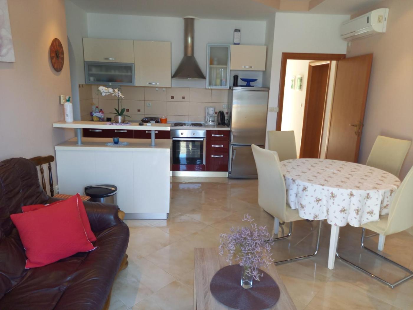 Apartament z 1 sypialnią i tarasem z widokiem na morze. Featuring a private entrance, this spacious apartment also comprises 1 living room, 1 separate bedroom and 1 bathroom with a shower. Meals can be prepared in the kitchen, which comes with a stovetop, a refrigerator, a dishwasher and kitchenware. Boasting a terrace with sea views, this apartment also provides air conditioning and a TV with satellite channels. The unit offers 2 beds. Apartament - 4 osobowy. Powierzchnia pokoju ok.: 81 mkw. ;