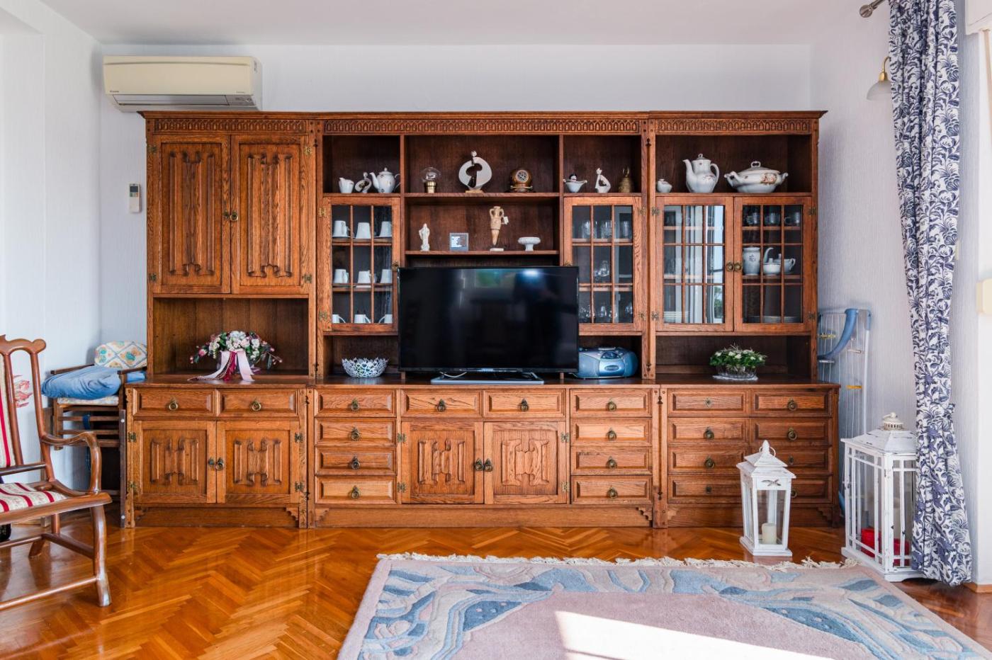 Apartament z 2 sypialniami, tarasem i widokiem na morze. This spacious apartment features 1 living room, 2 separate bedrooms and 1 bathroom with a bath. In the well-fitted kitchen, guests will find a stovetop, a refrigerator, kitchenware and an oven. Boasting a terrace with sea views, this apartment also features air conditioning and a TV with satellite channels. The unit has 3 beds. Apartament - 5 osobowy. Powierzchnia pokoju ok.: 137 mkw. ;